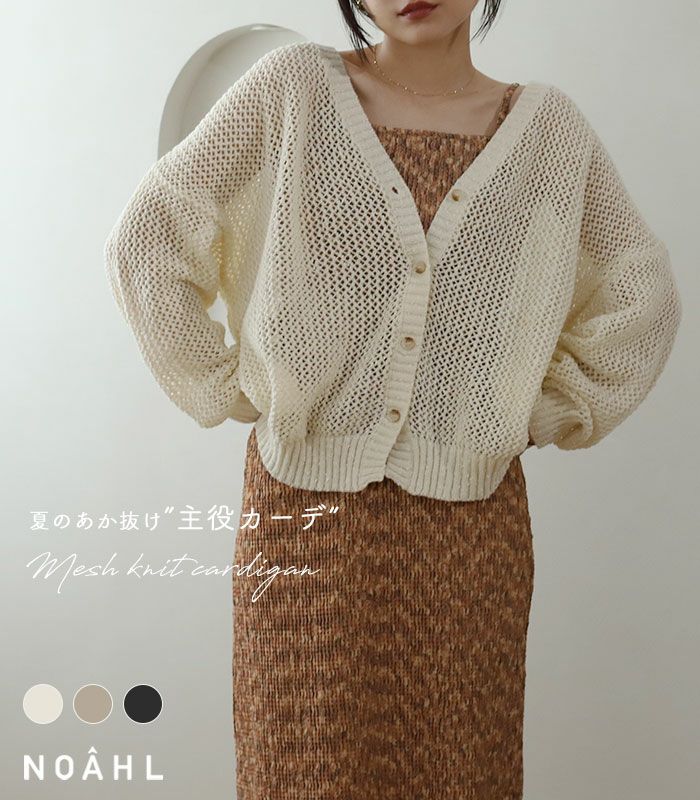 メッシュニットで抜け感がGood◎たぷんとしたデザインが可愛い♪腰回りをカバーする着丈が嬉しいポイントです。ボタンを閉めても開けてもサマになるこだわりシルエットになっています◎