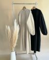 ぽわんとしたボリューム袖がノアルらしいロングワンピース。女性らしいふんわりシルエットに加え、フロントやショルダーにはピンタックデザインを施し、程よくエッジの効いた1着となっています。季節によってはゆったりとしたベストを重ねたレイヤードスタイルもおすすめです。またボタン付きの前開き仕様のため、ママさんも着やすいデザインも嬉しいポイントとなっています。