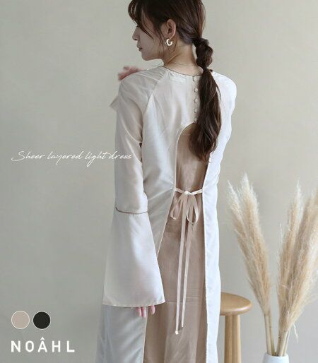 普段より少しだけドレスアップしたい日に、ぴったりなライトドレス。オーガンジーとインナーキャミワンピースのセットで、さらっと軽やかなシアー感が特徴。前はダーツを入れシンプルながら美ラインに、後ろはヘアアレンジが映えるデザイン性に拘っています。柔らかな配色が女性らしいベージュカラーと、きちんと感が出るオトナなブラックカラーの2色をご用意しました。小物のチョイスにより普段使いもしやすい、手ごろさと扱いやすさも魅力のひとつ。記念日ディナー、贅沢ランチ、二次会、卒業パーティなどのイベント時に選びたい一着です。