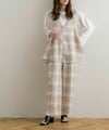 フリンジ×ブロック柄がコーディネートの主役になるワイドパンツ。落ち着いた色味とレトロ感あるデザインが大人可愛い1着♪同素材の「フリンジブロックフレアベスト」とセットアップで着るのもおすすめ◎