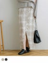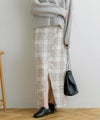 フリンジ×チェック柄に、深めのスリットデザインが大人っぽく着こなせるナロースカート。秋らしく落ち着いた色味とレトロ感あるデザインが大人可愛い1着♪