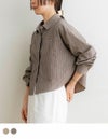 商品紹介 絶妙なくすみカラーの配色ストライプが大人っぽいショートシャツ。