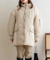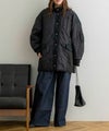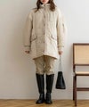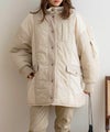 配色×キルティングが特徴的なミドル丈アウター。中綿入りで、軽量ながら防寒対策もバッチリ◎太ももまで隠れるミドル丈なのも暖かポイント!スタンドネックでマフラーいらずな1着です♪