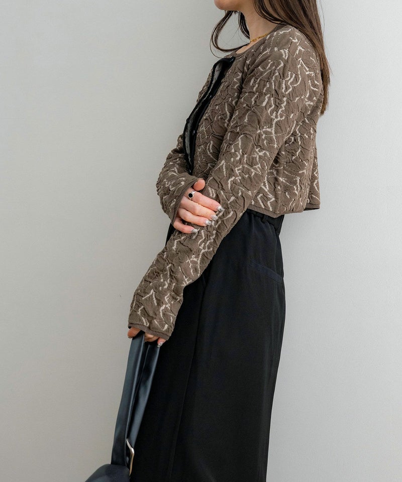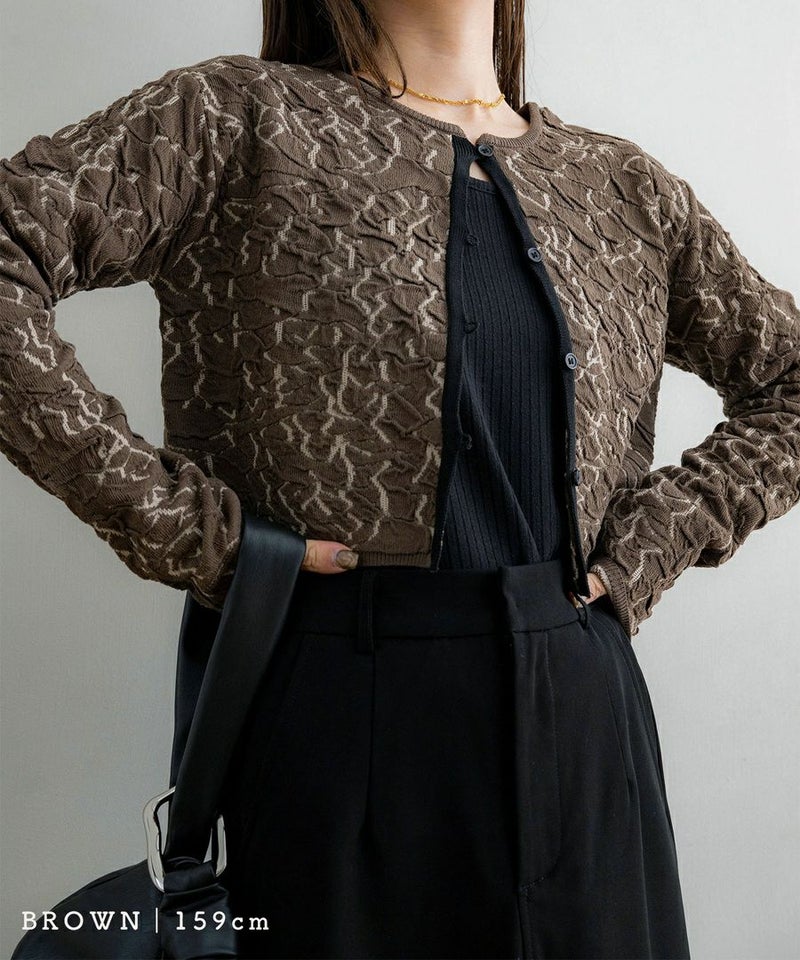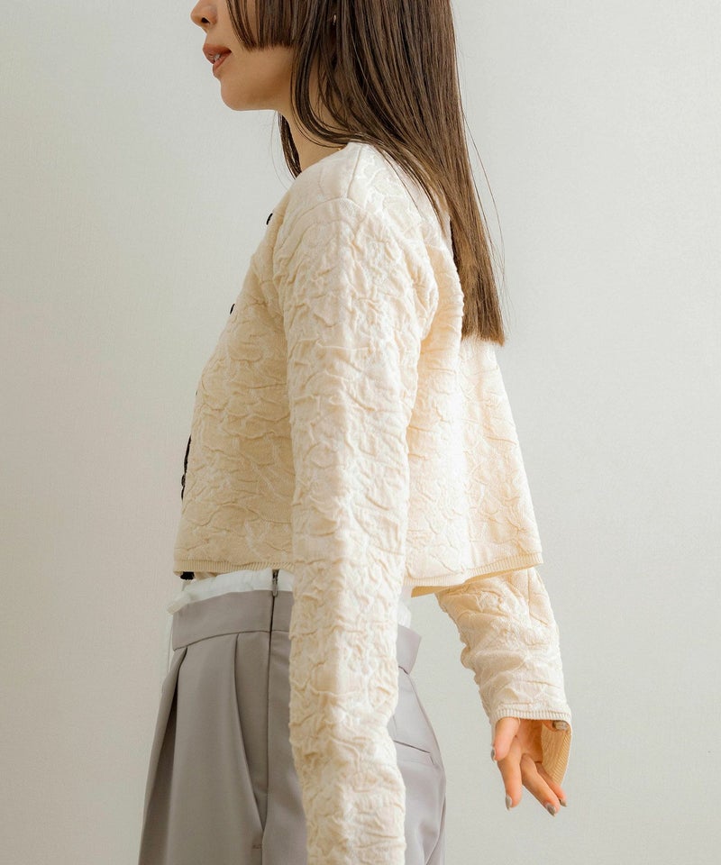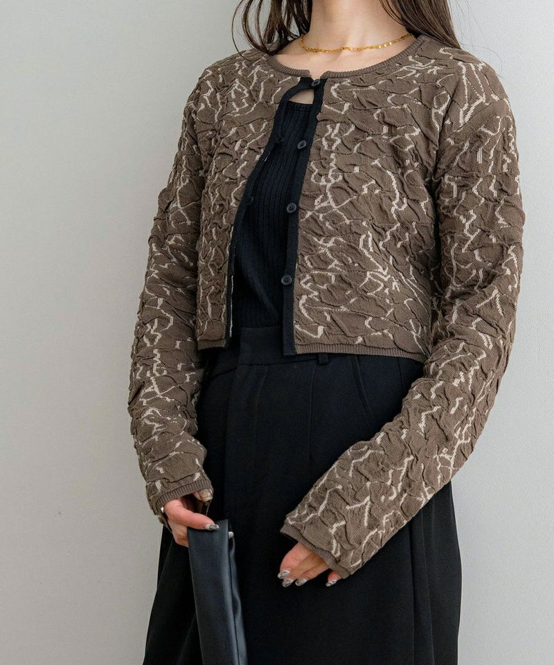 膨れジャガードニットカーディガン