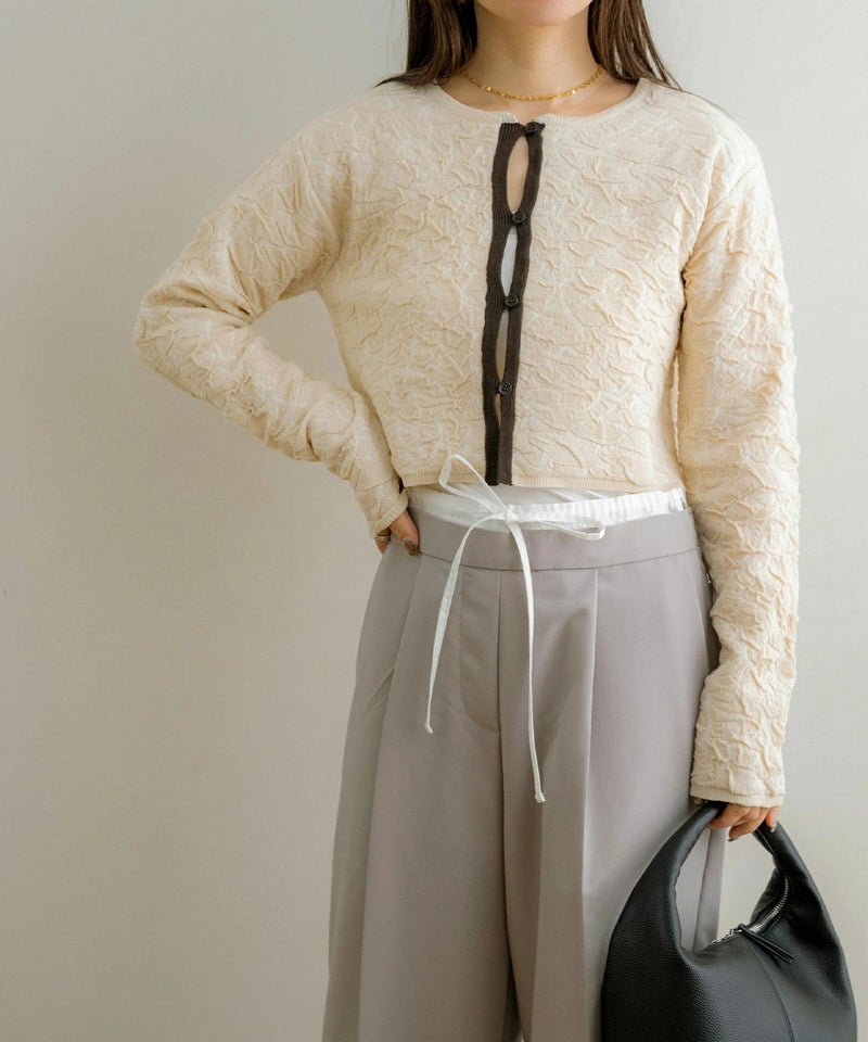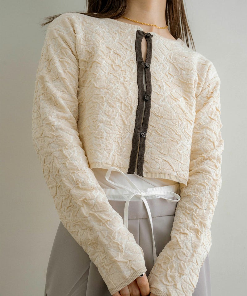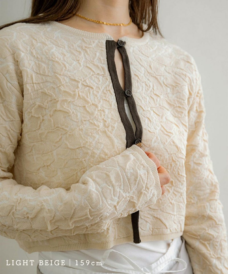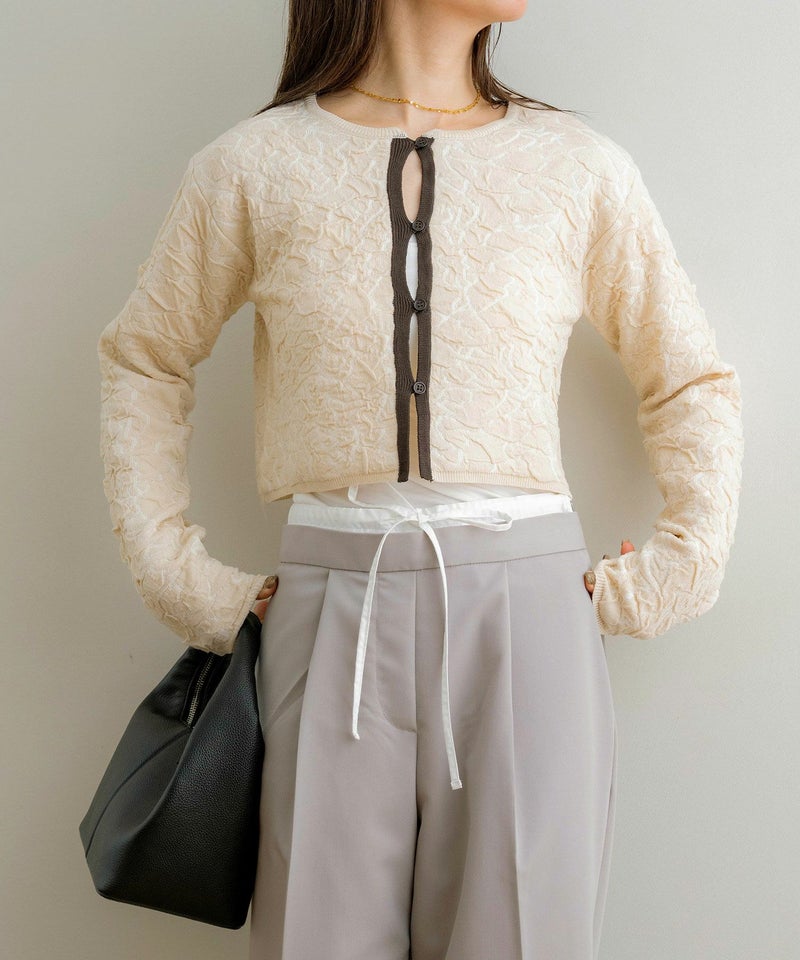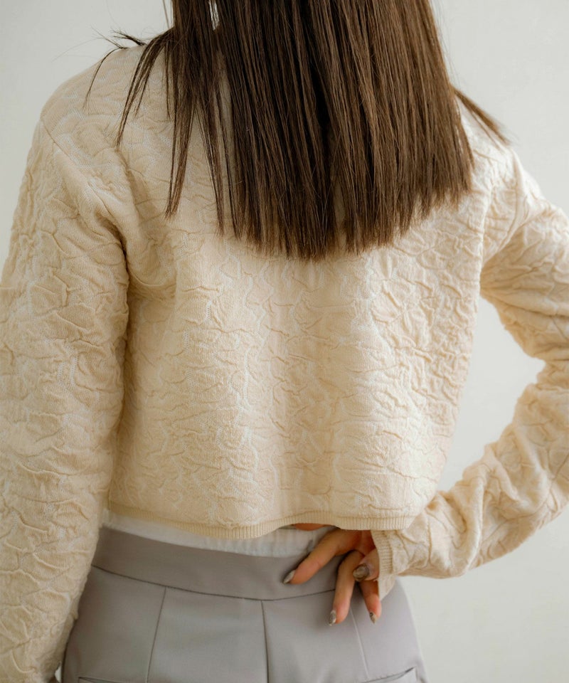 膨れジャガードニットカーディガン