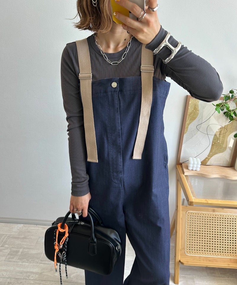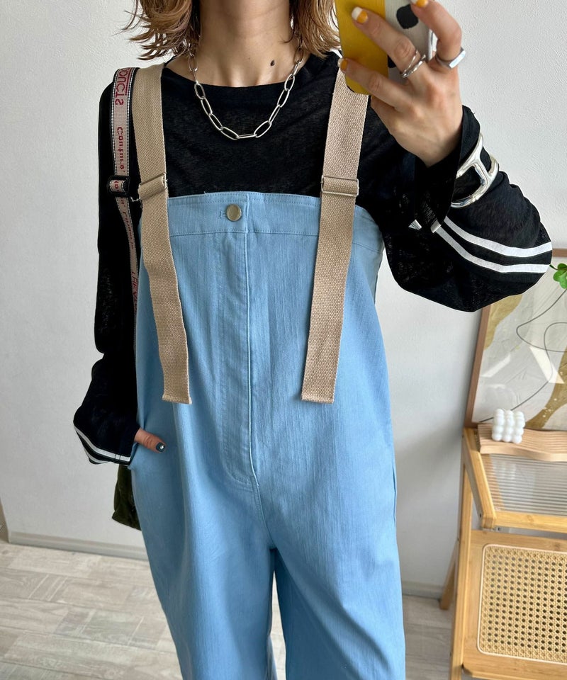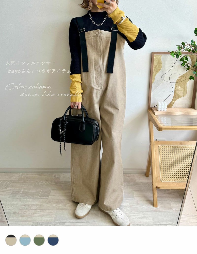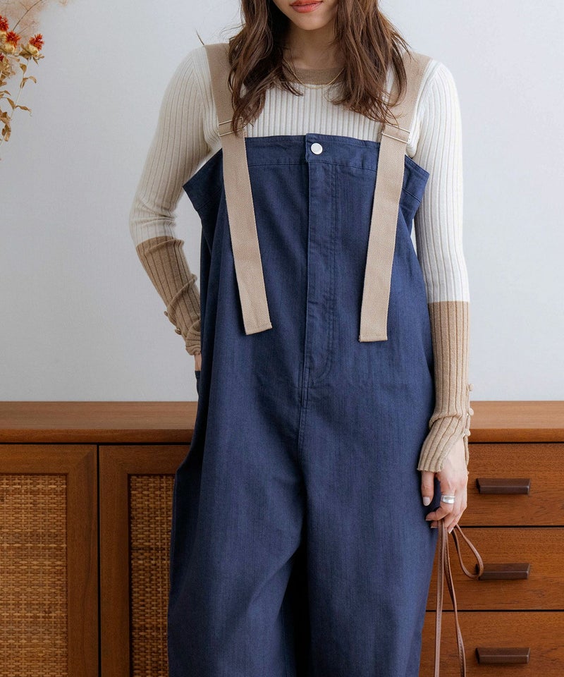 《mayoさんコラボ》配色デニムライクサロペット
