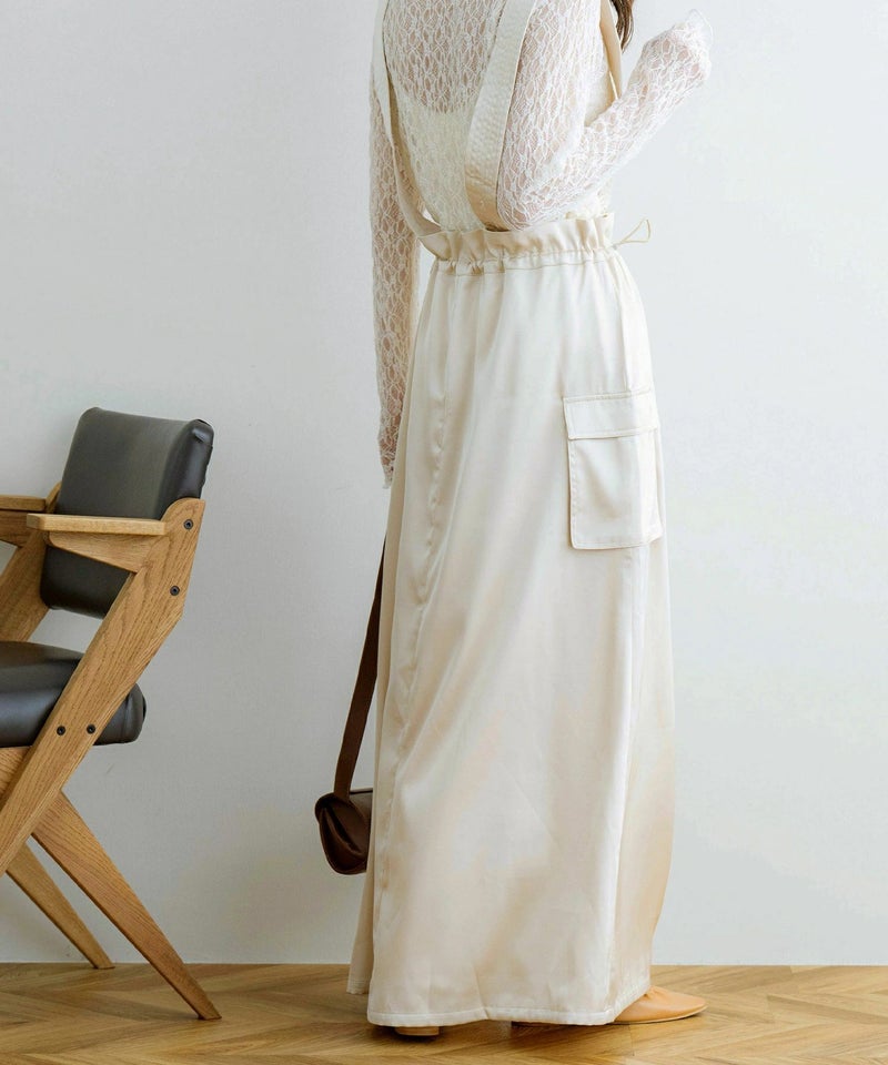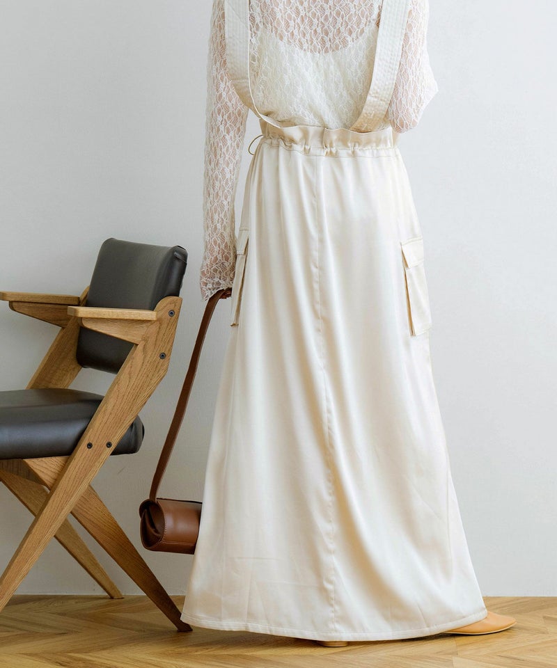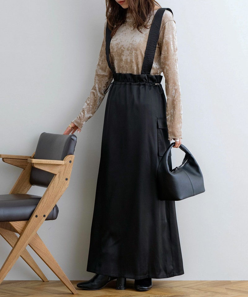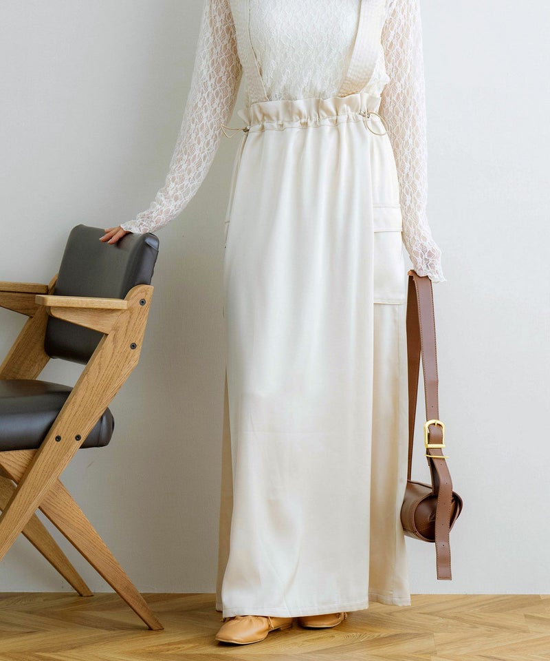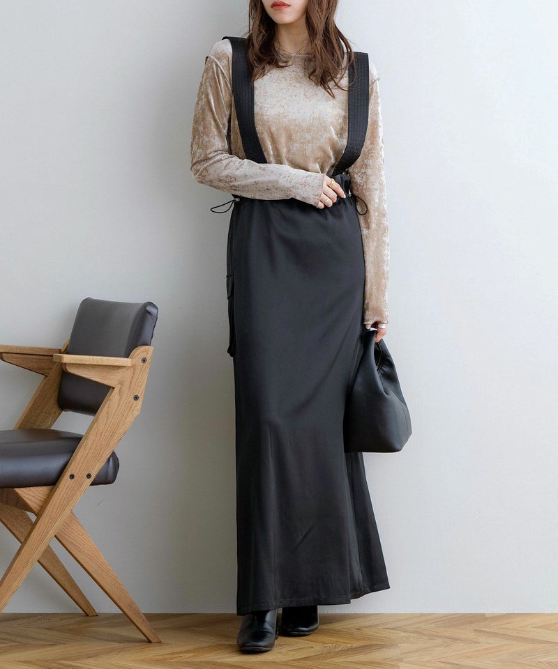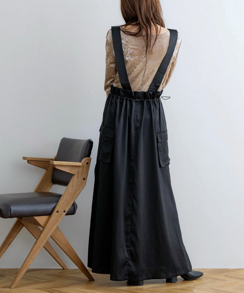 サスペンダー付きドロストサテンスカート