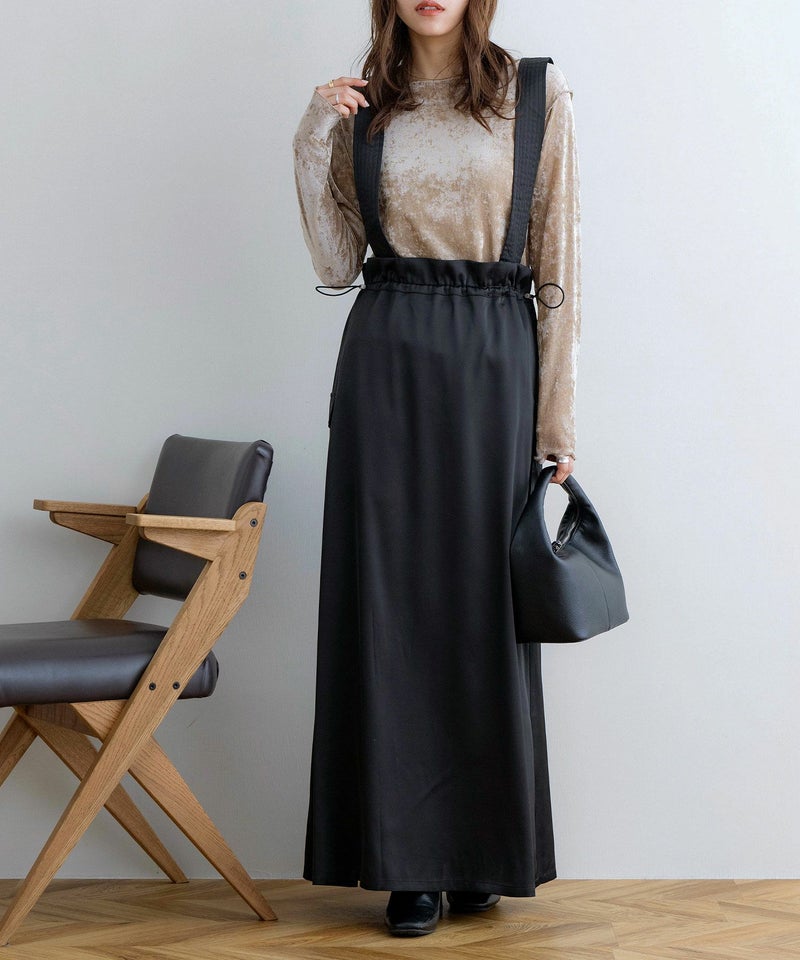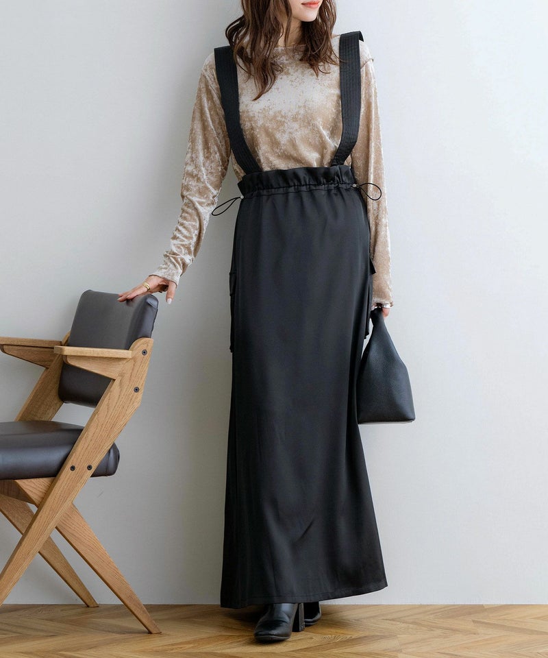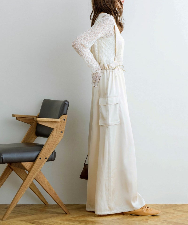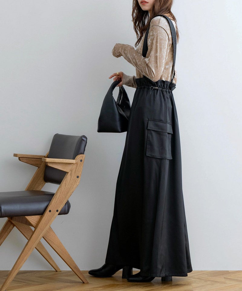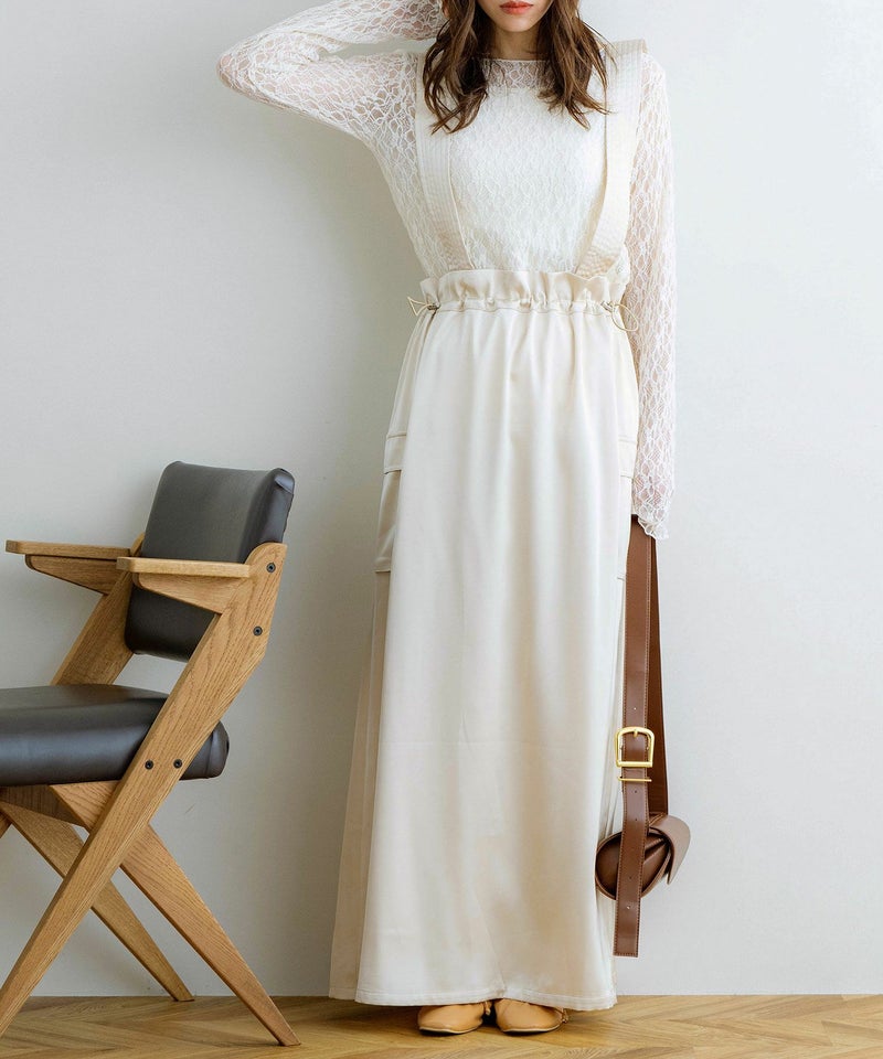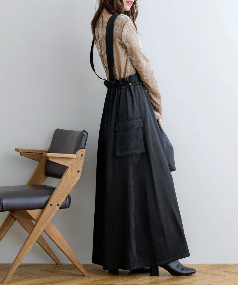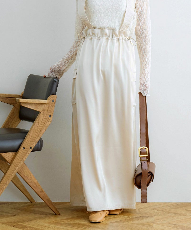 サスペンダー付きドロストサテンスカート