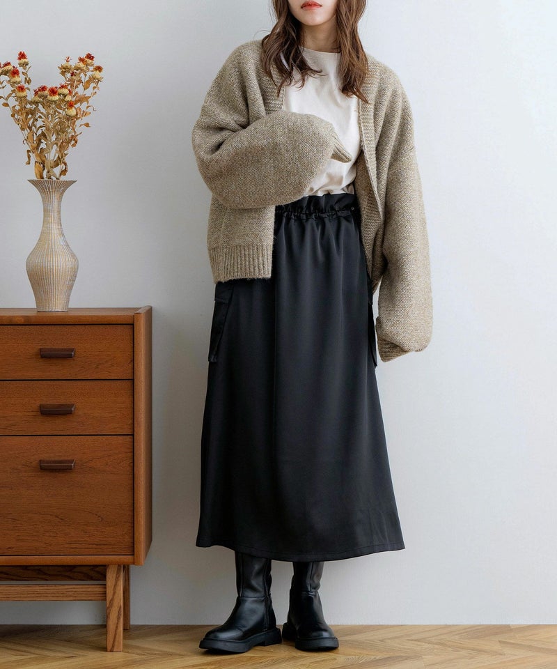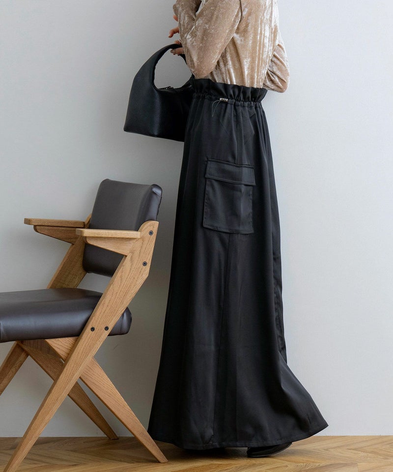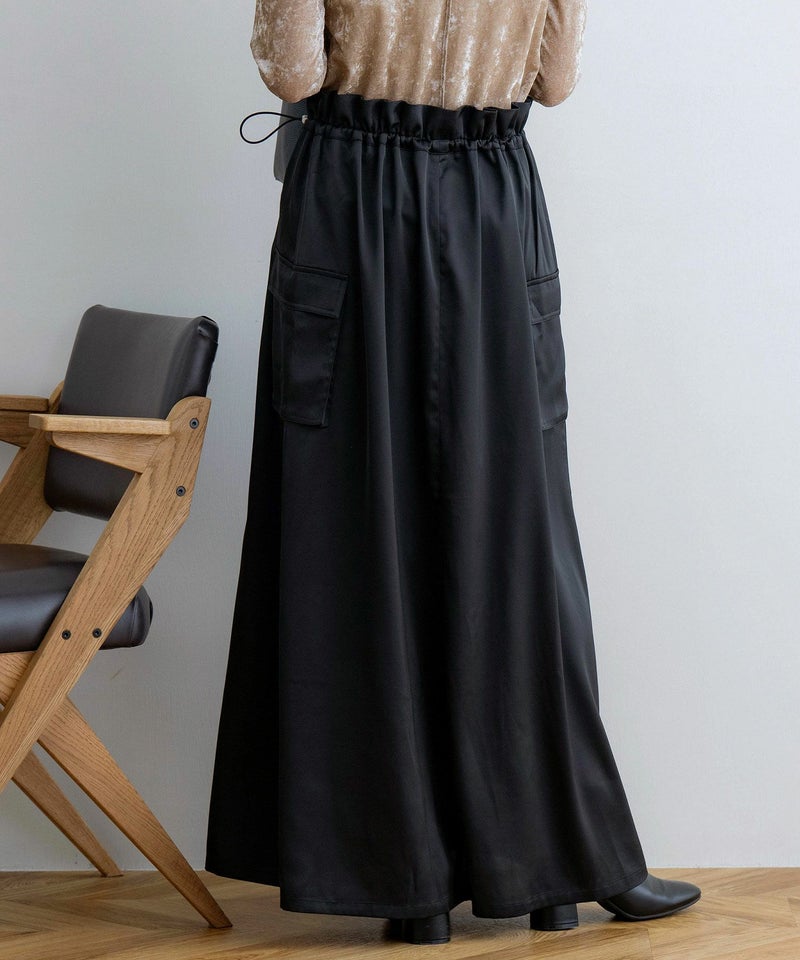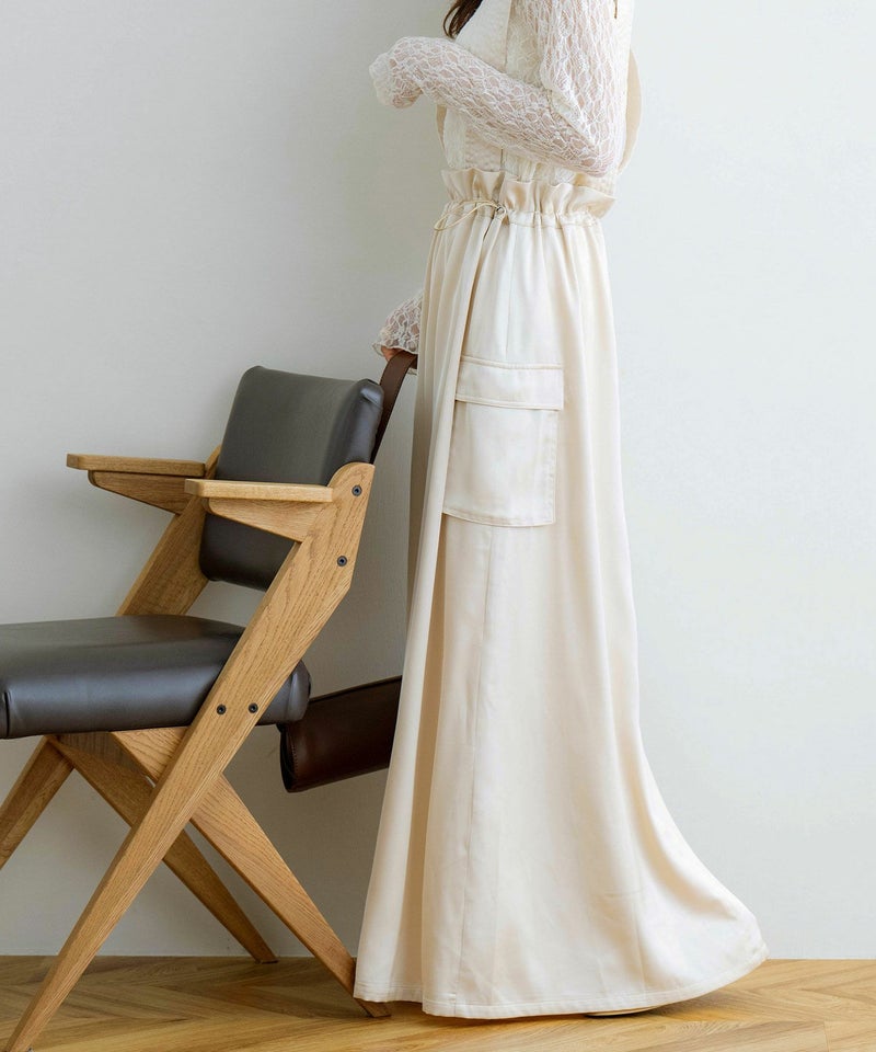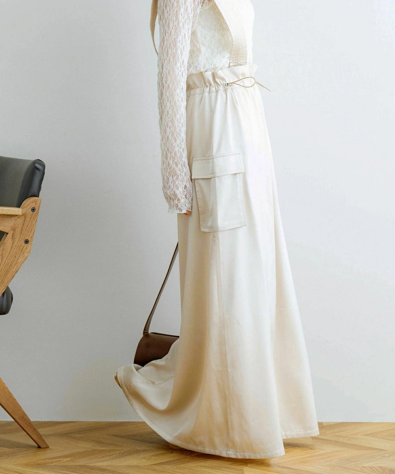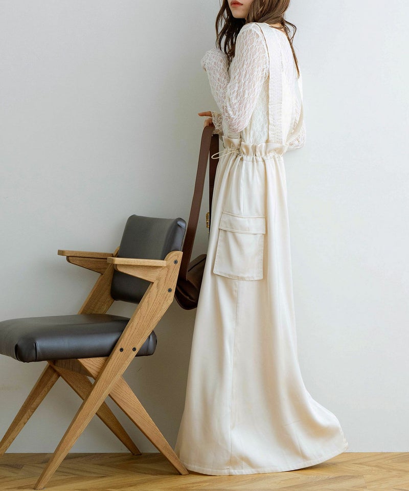 サスペンダー付きドロストサテンスカート