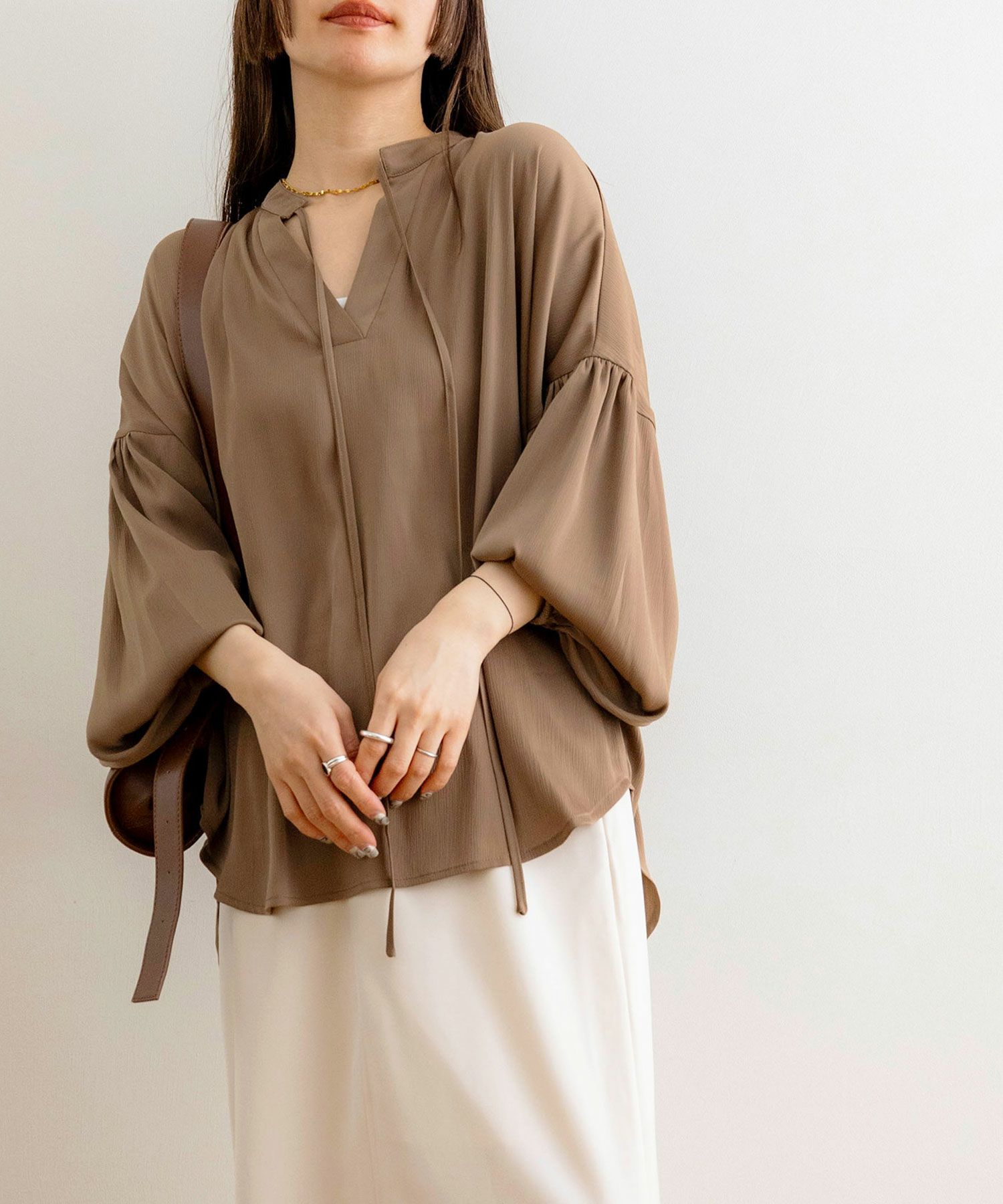 レイヤード風襟付きボリュームシャツ