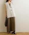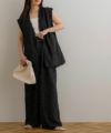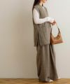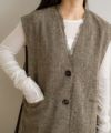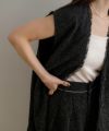 サマーツイードが華やかなボタンジレ。裾や襟元のフリンジデザインが今年らしく、深めのVネックがオーバーシルエットでもすっきり見え◎シアーのトップスやタンクトップにレイヤードするだけで春らしくお洒落に決まる1着です♪同素材の「サマーツイードタックワイドパンツ」とセットアップでの着用もおすすめ◎