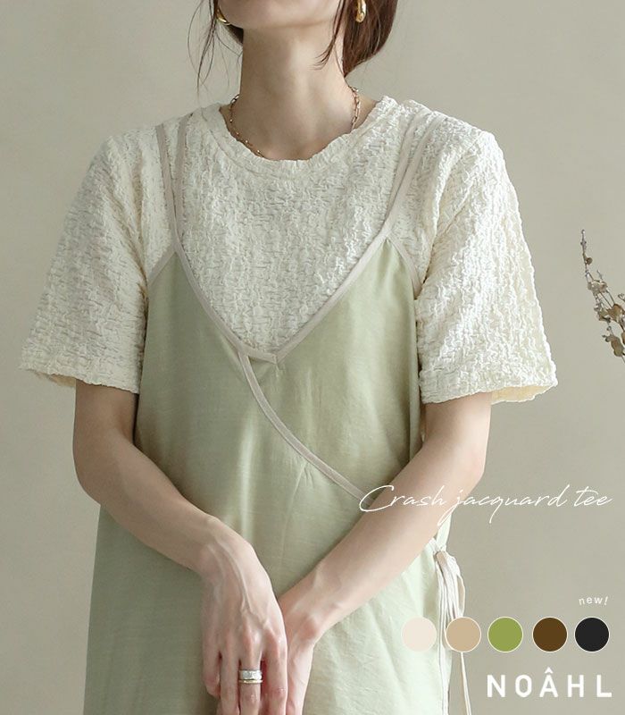 【サイズ展開&サイズ感見直しました】クラッシュジャガードの独特の表情が新鮮なカットソー。シンプルなので1枚でさらっと合わせいていただいたり、レイヤードスタイルのインナーとしても味のある生地が、雰囲気を出してくれるのでおすすめです。程よい生地の厚みやシルエットのコンパクトさで、様々なボトムと相性が良く着回し力に優れています。スタイリングにアクセントを足してくれる1着です。