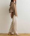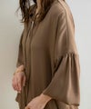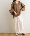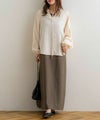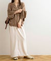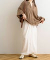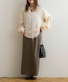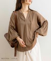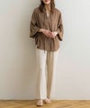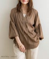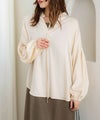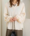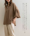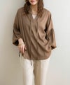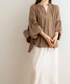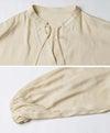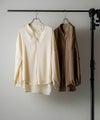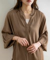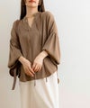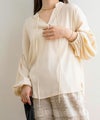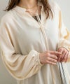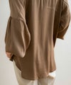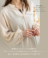 スキッパーデザインが顔まわりをすっきり見せ、抜き襟でこなれ感のあるブラウス。肩のラインを落としたドロップショルダーに、ふんわりボリューミーな袖が女性らしい1着です♪程よい光沢感が上品なシャイニー素材に、さりげなく楊柳加工を施しナチュラルに仕上げました。襟元の紐は、結んだり垂らしたりして雰囲気を変えられます◎