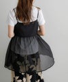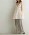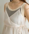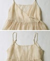 商品紹介 Tシャツやタンク、シアートップスなどシンプルなコーディネートに合わせるだけで華やかにお洒落見えするキャミトップス♪カシュクール×リボンのデザインが女性らしく、細かいラメが織り込まれたシアー素材が程よくキラキラしてシーズンムード漂う1着です◎