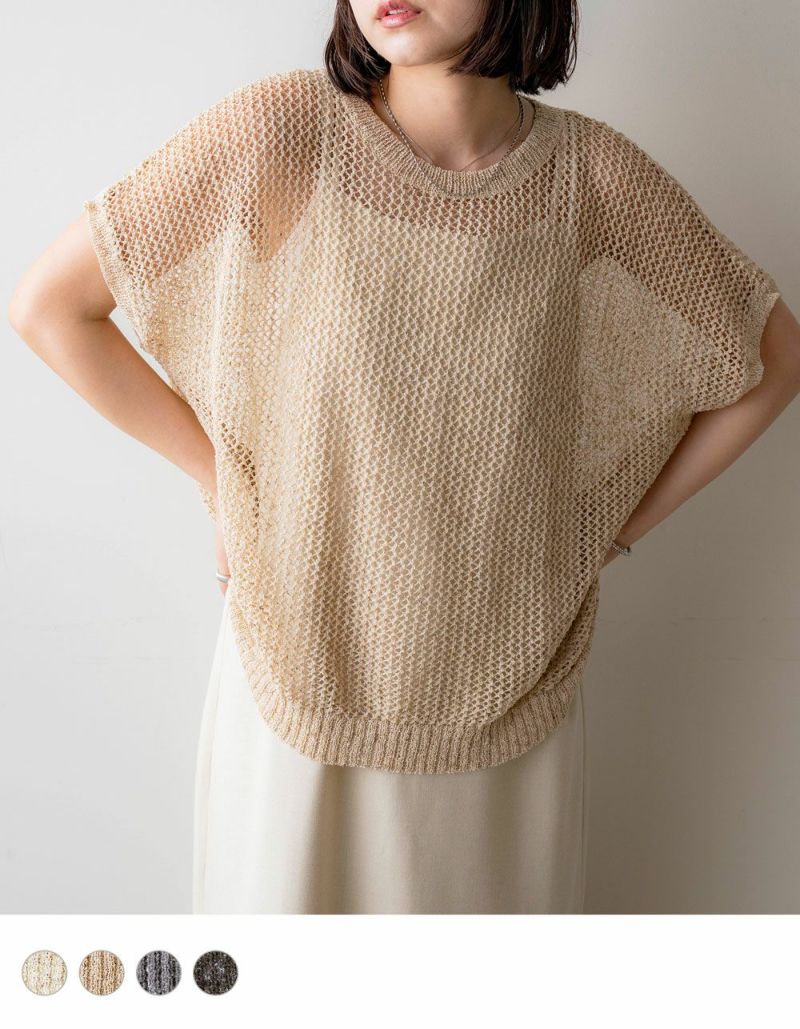 《大人気インフルエンサーmayoさんコラボアイテム》 涼しげなメッシュニットで夏らしい抜け感を演出する1着。 二の腕の1番気になる位置をカバーしてくれるドロップショルダーに ゆったり身幅で、体のラインを拾わないシルエットが◎ シャリ感のあるMIXサマーニットがナチュラルで合わせやすく ラフなのにどこか大人っぽさのあるトレンドライクなサマーニットトップスです♪