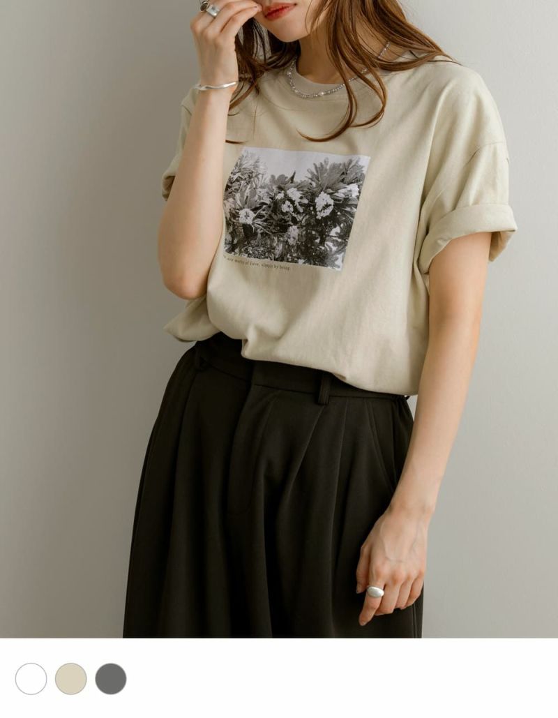 フロントのフォトプリントが目を惹く主役Tシャツ。