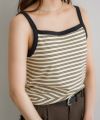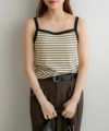 大人カジュアルなボーダー柄がコーディネートの 主役になるキャミソール。 カップ付きで1枚で着られてシャツなどのインナーとしてはもちろん、 1枚でもサマになり着回し力も◎