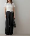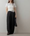 ワッシャー加工がお洒落なサテン素材のワイドパンツ。
