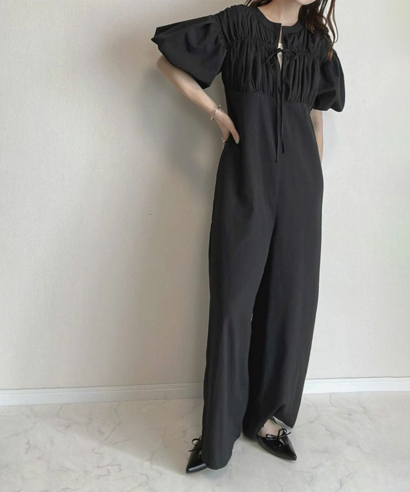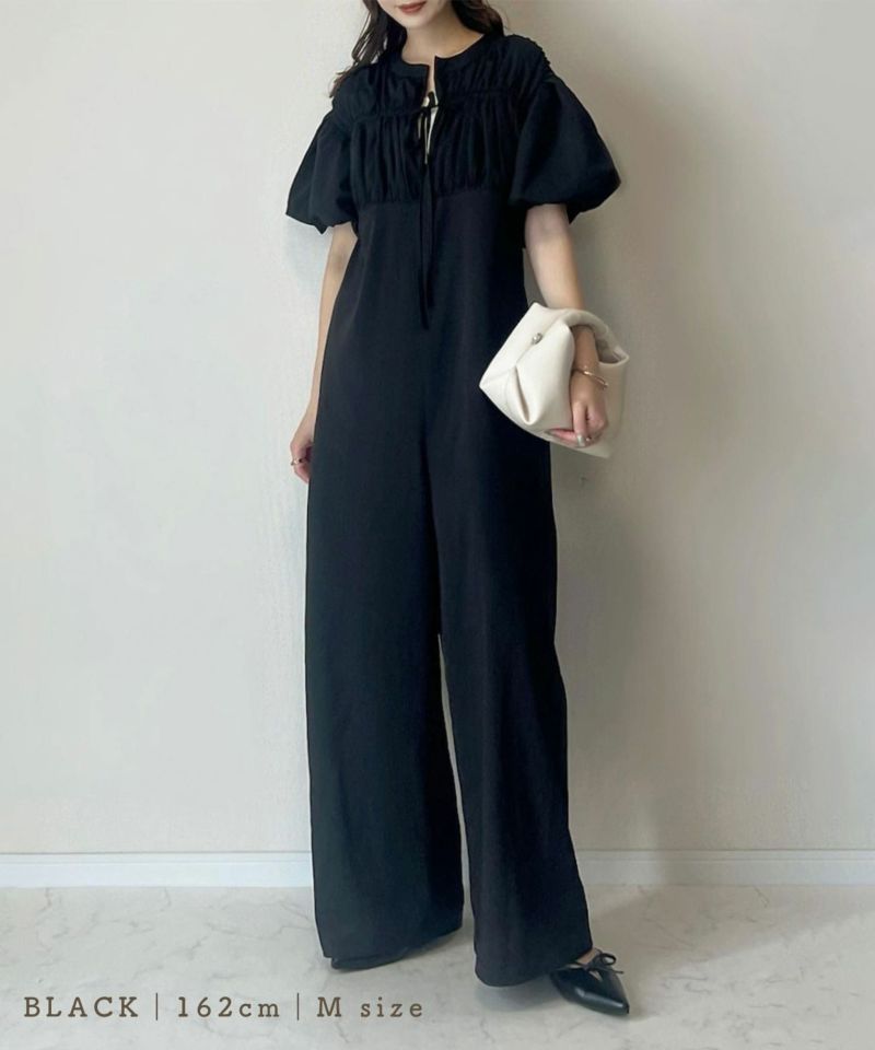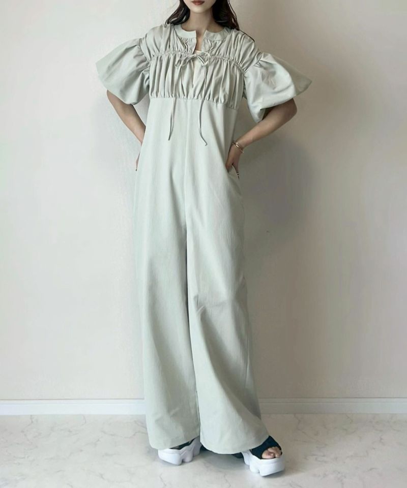 楊柳バルーンスリーブオールインワン《haruさんコラボ》