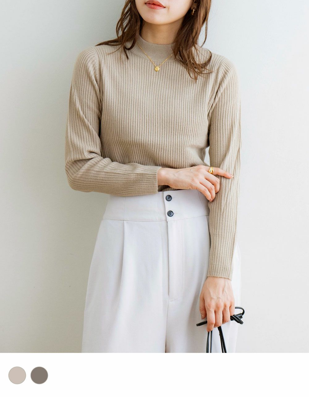 シンプルで大人っぽく着こなせるリブニットトップス。秋冬のインナーとしても大活躍な1着です◎