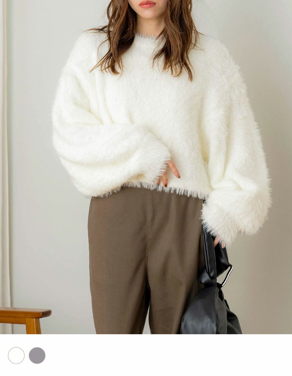 フェザーニットのふわふわとした柔らかい素材感が冬にぴったりのプルオーバー。