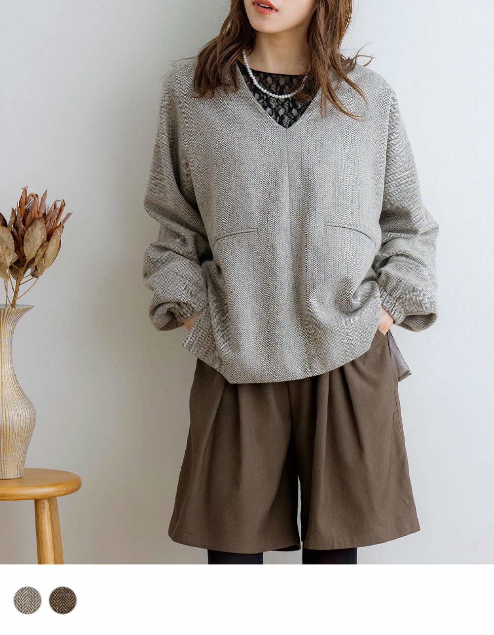 ヘリンボーン柄が秋冬にぴったりのプルオーバー。