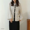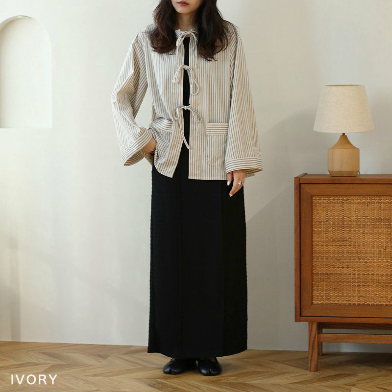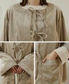 ストライプコーデュロイリボンブラウス