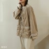 コーデュロイのあたたか素材にストライプの爽やかさで、今のシーズンから春先まで楽しめるブラウス。