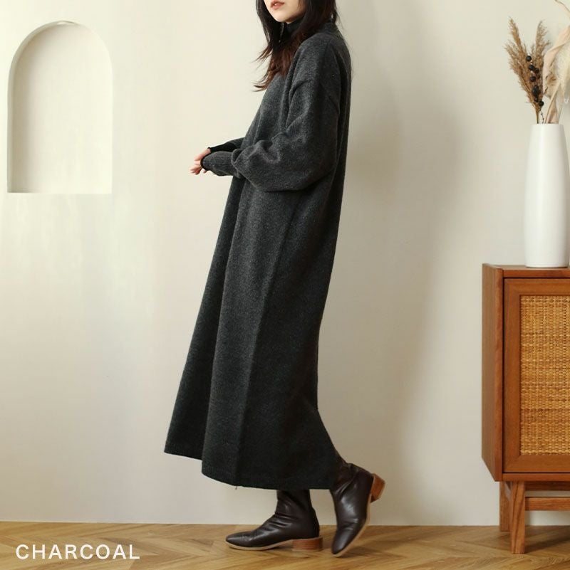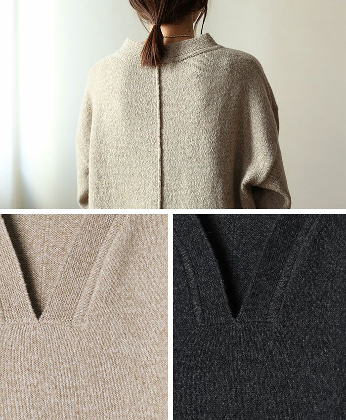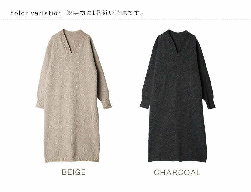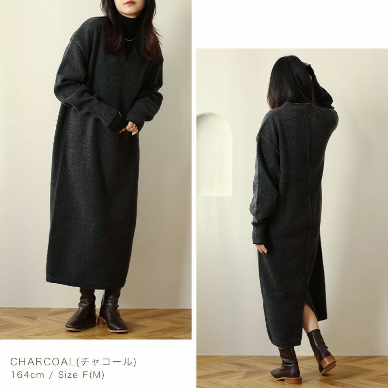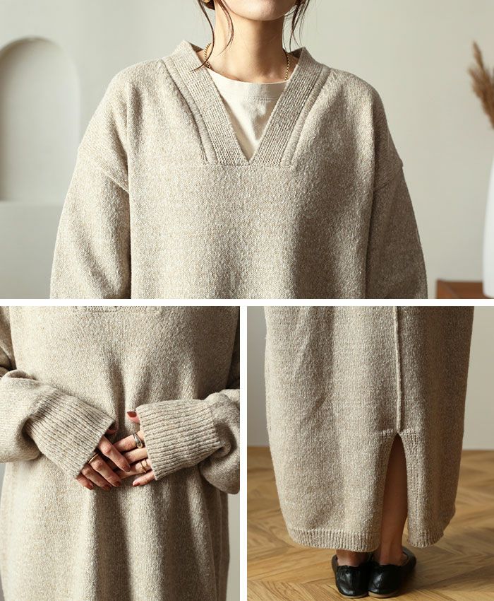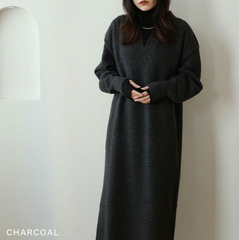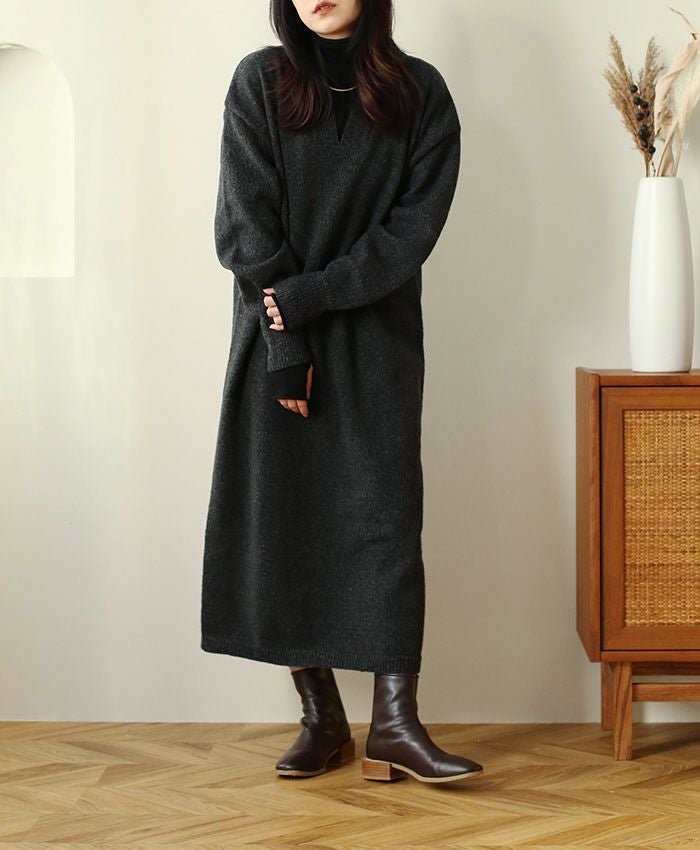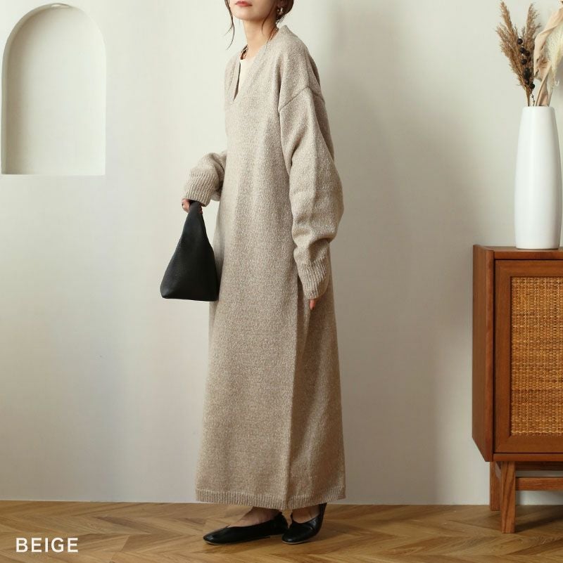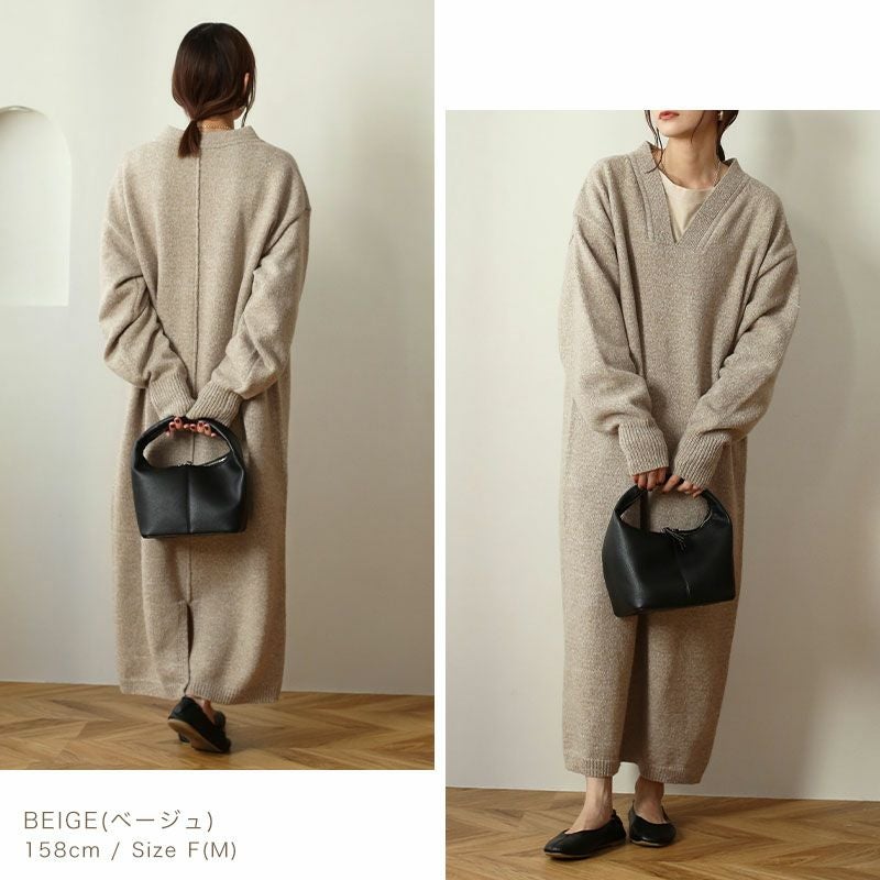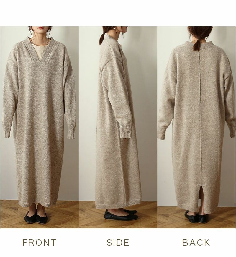 Vネックニットワンピース