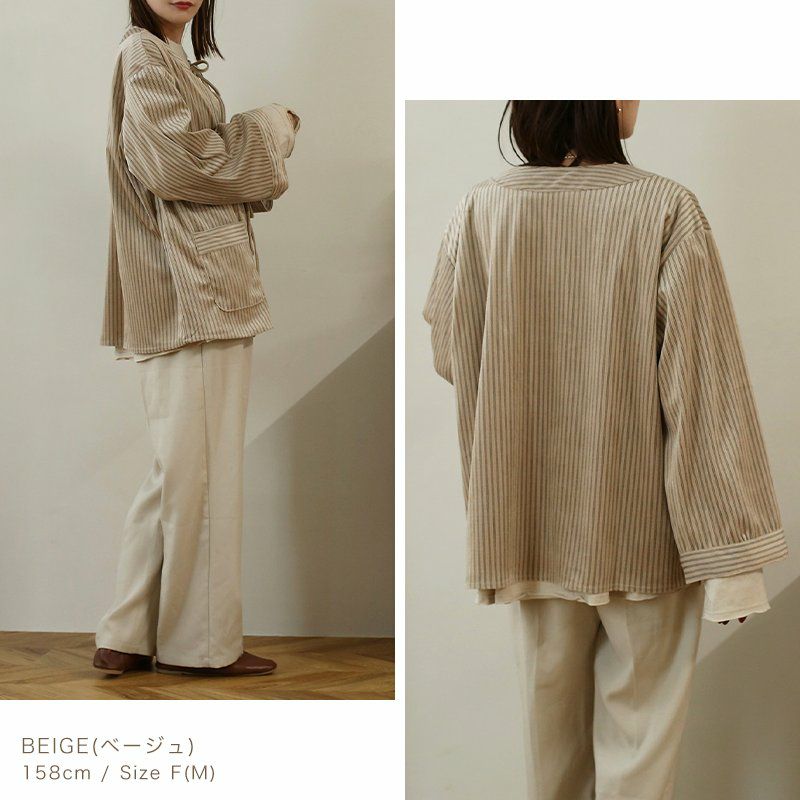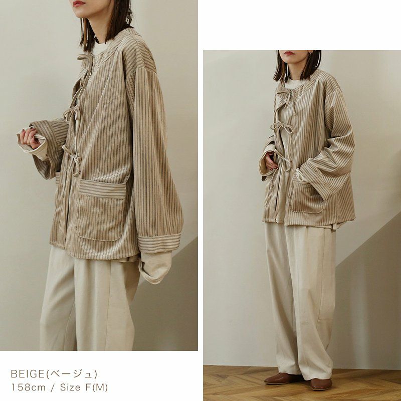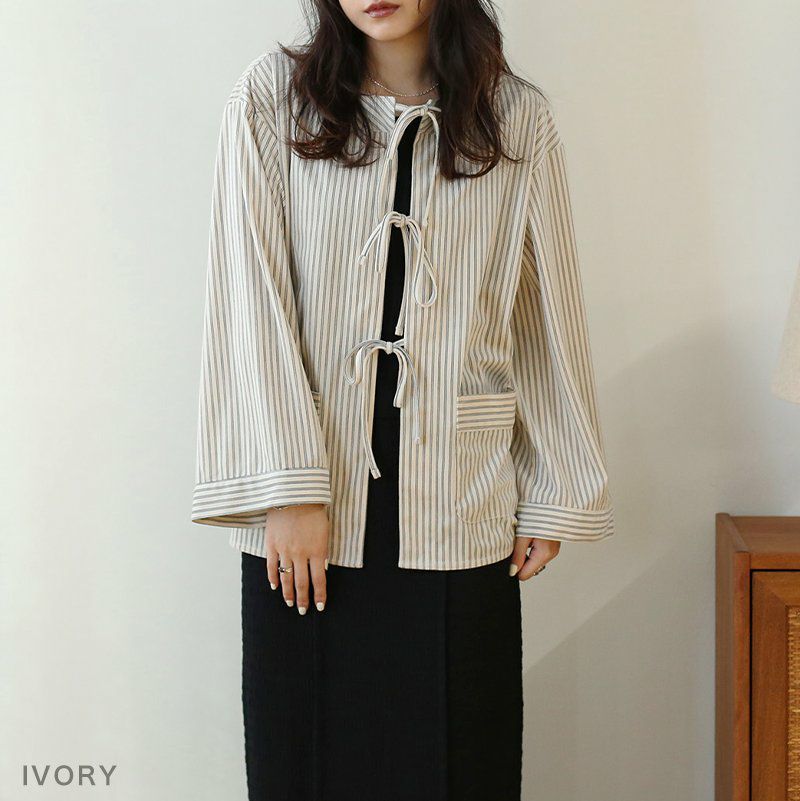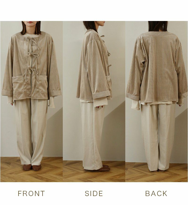 ストライプコーデュロイリボンブラウス
