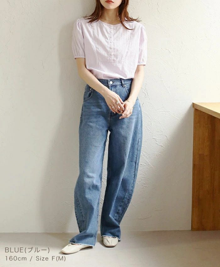 フレアスリーブボタントップス