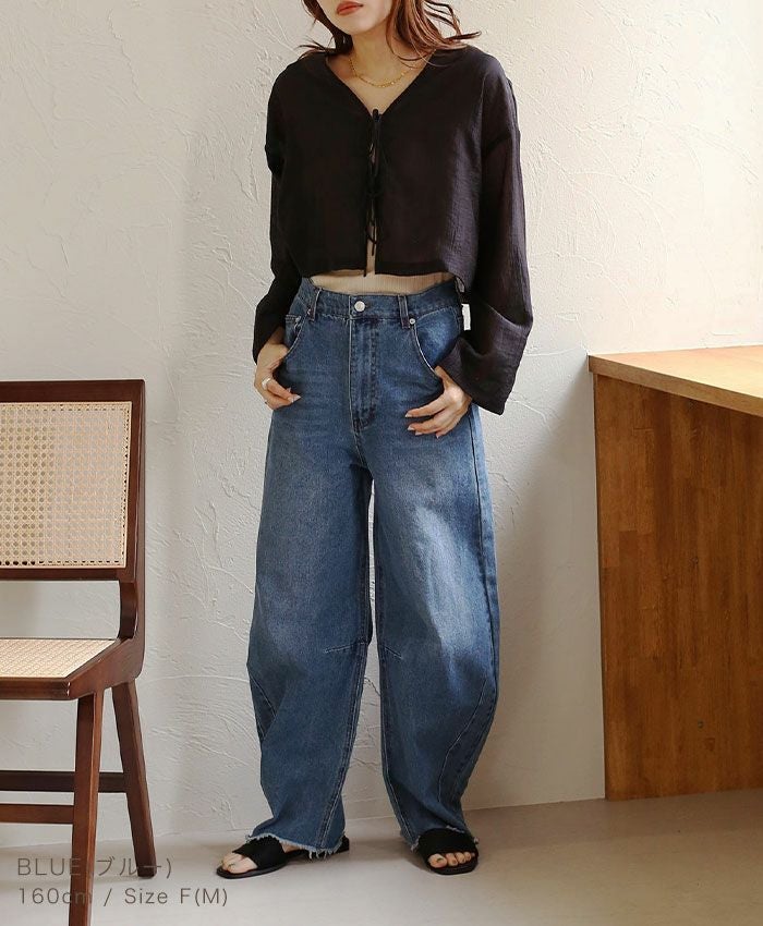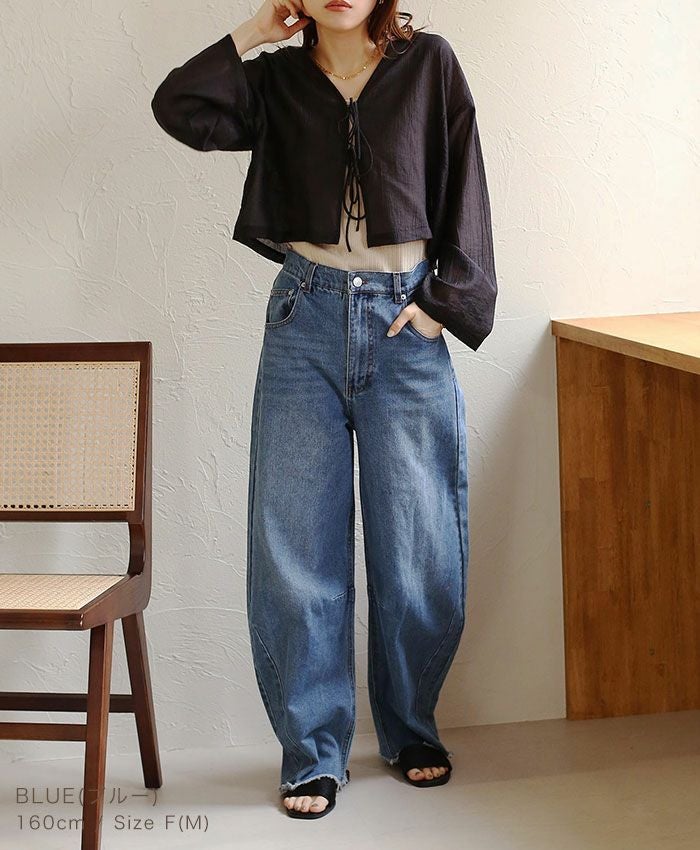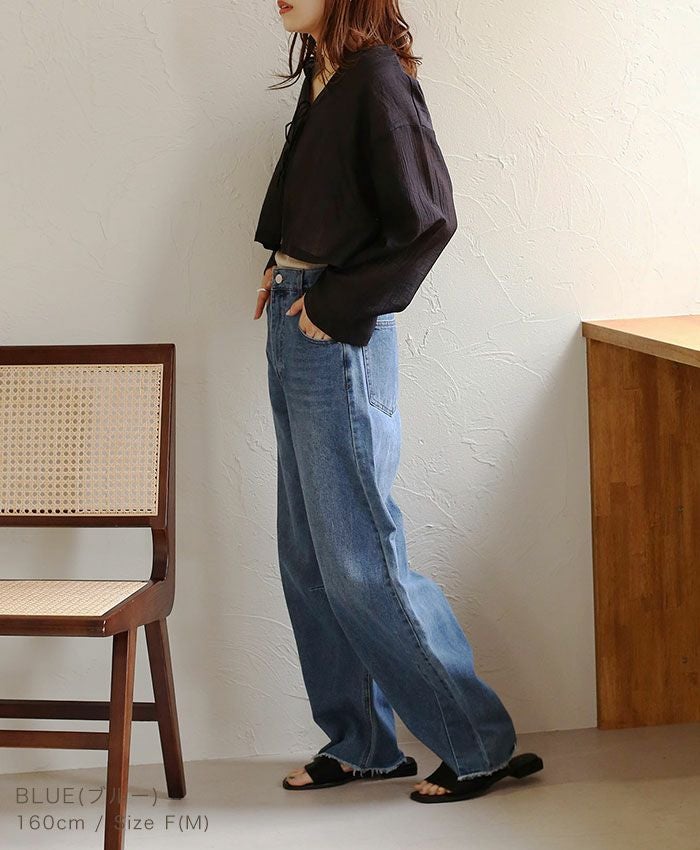 デニムカーブワイドパンツ