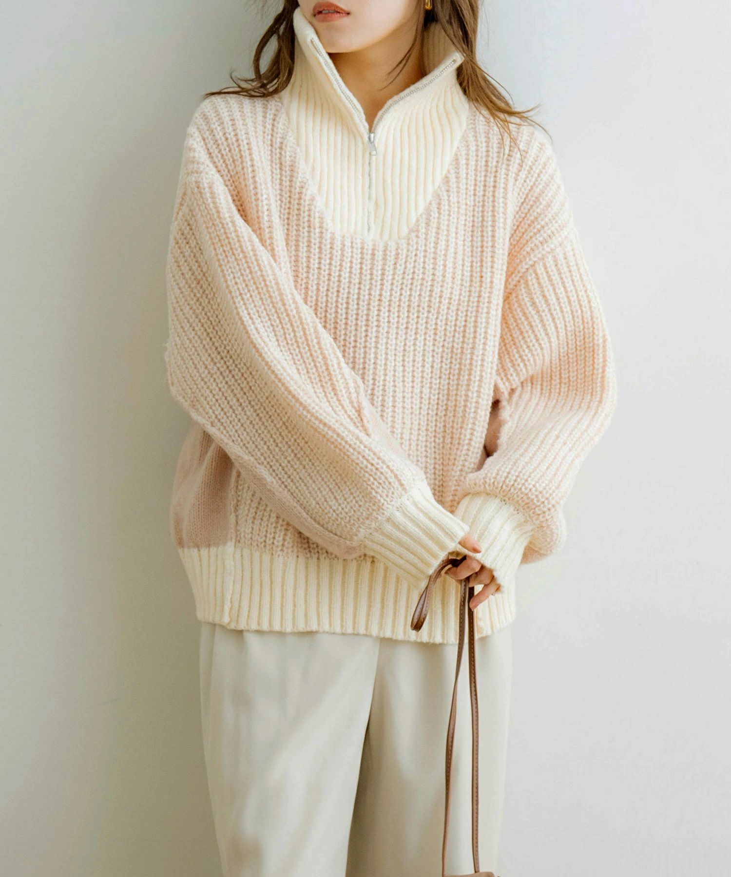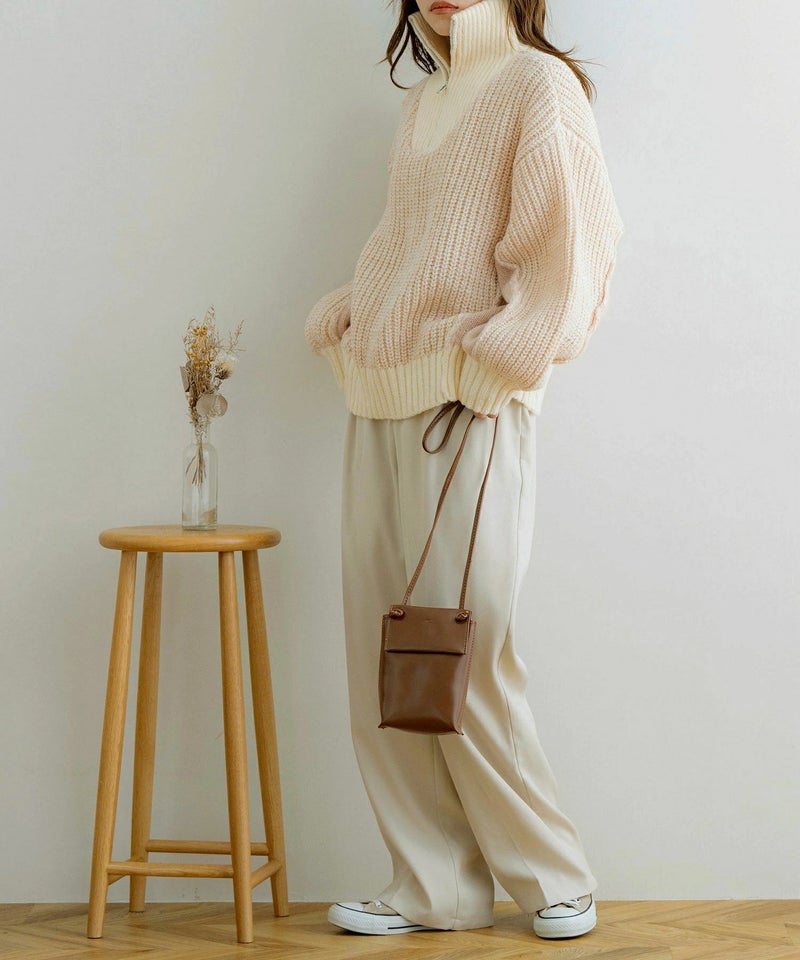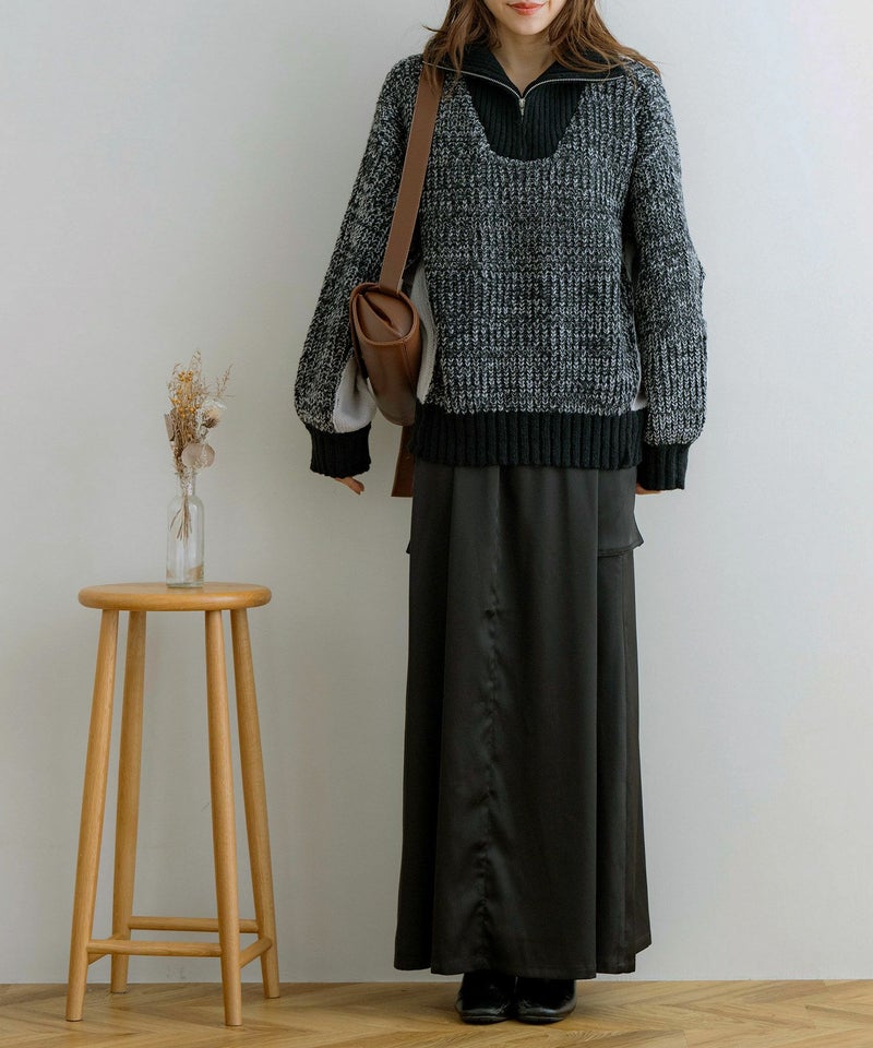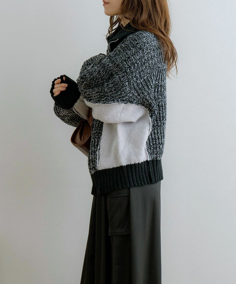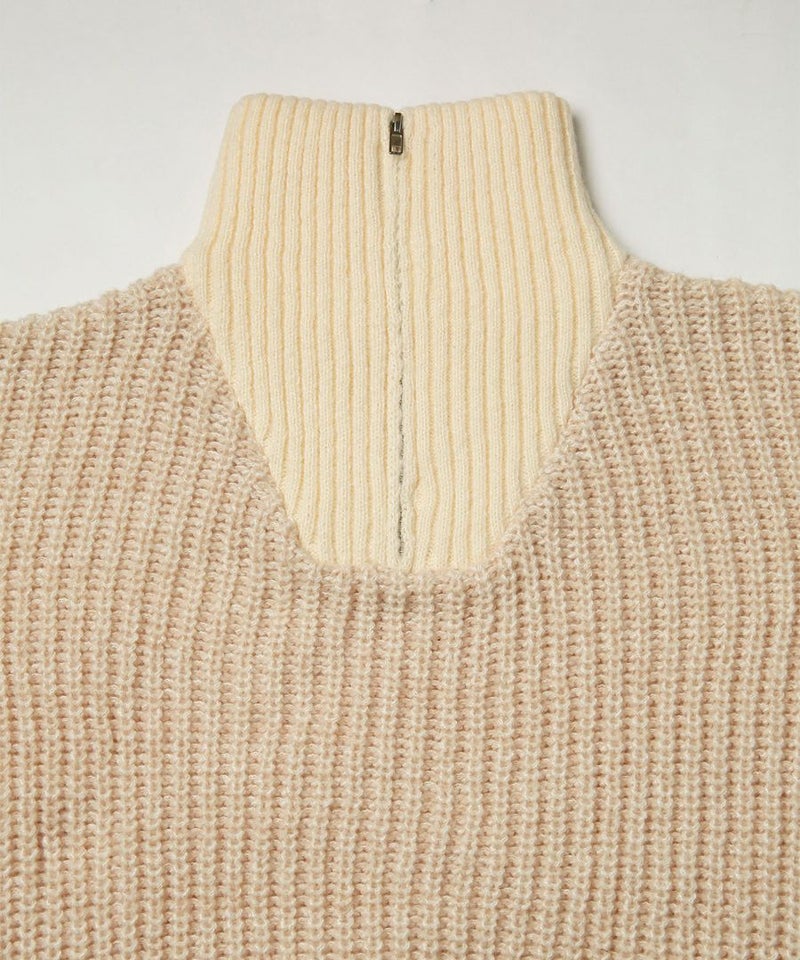 ハーフジップ配色ニットプルオーバー