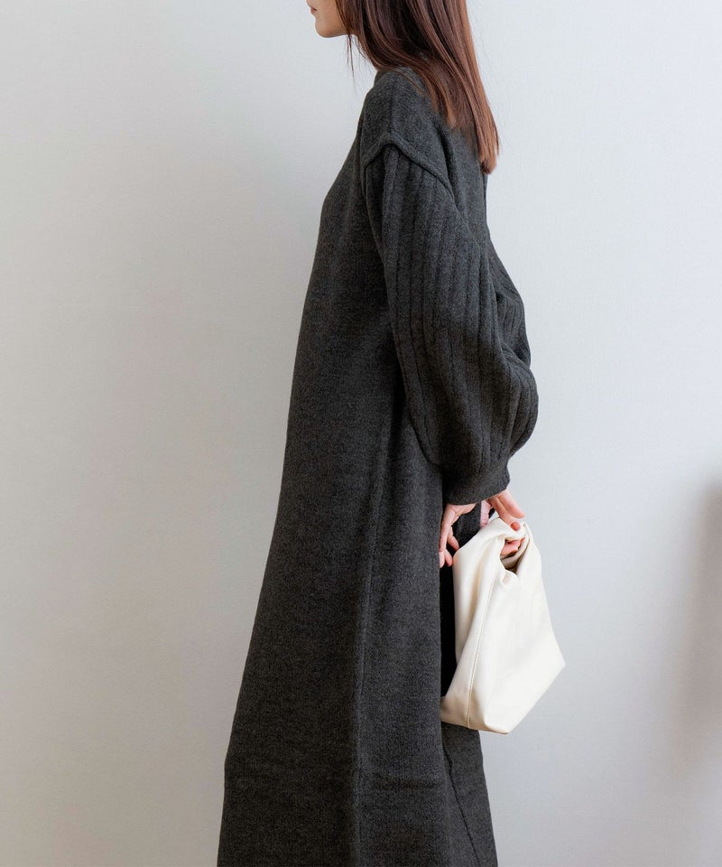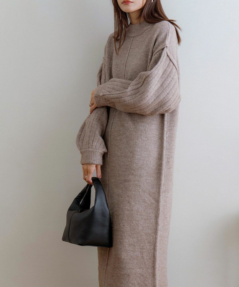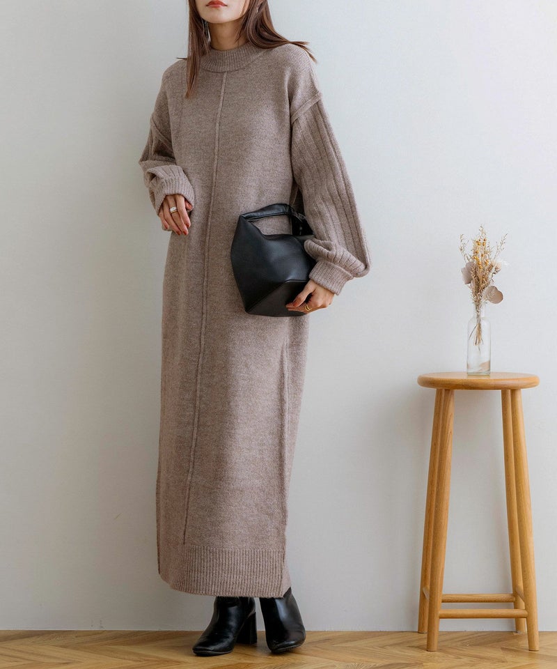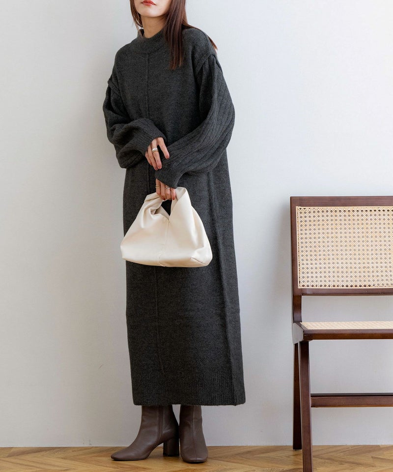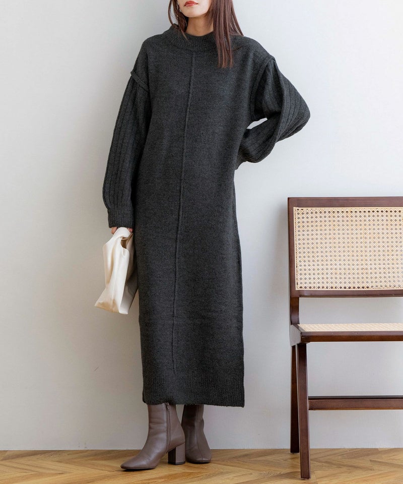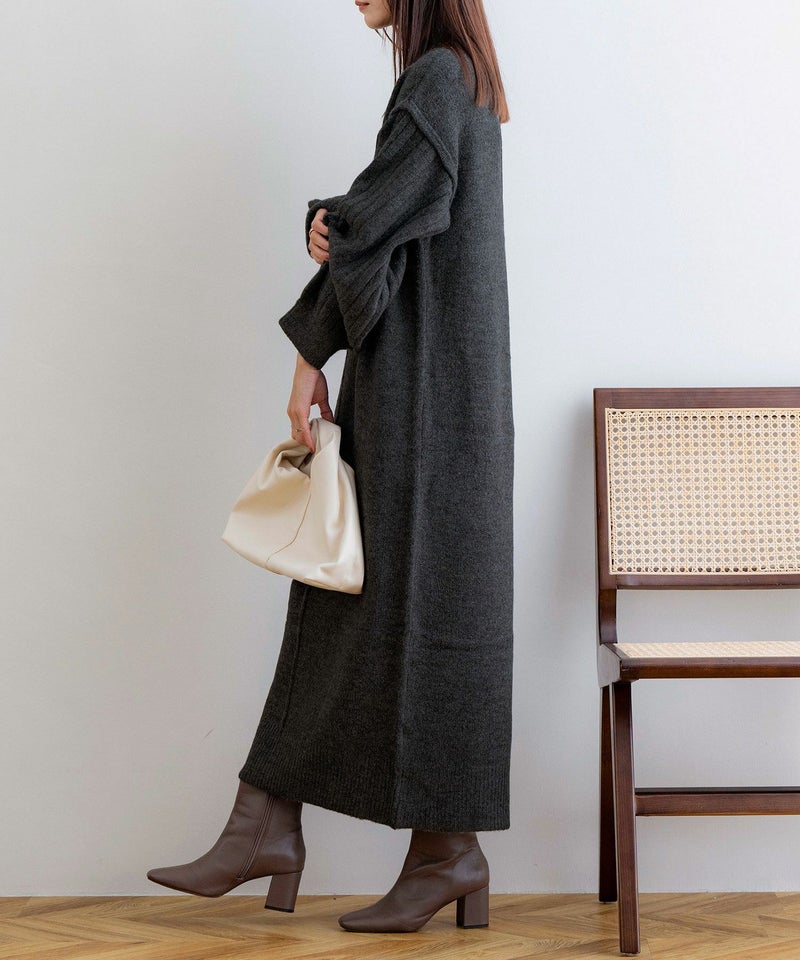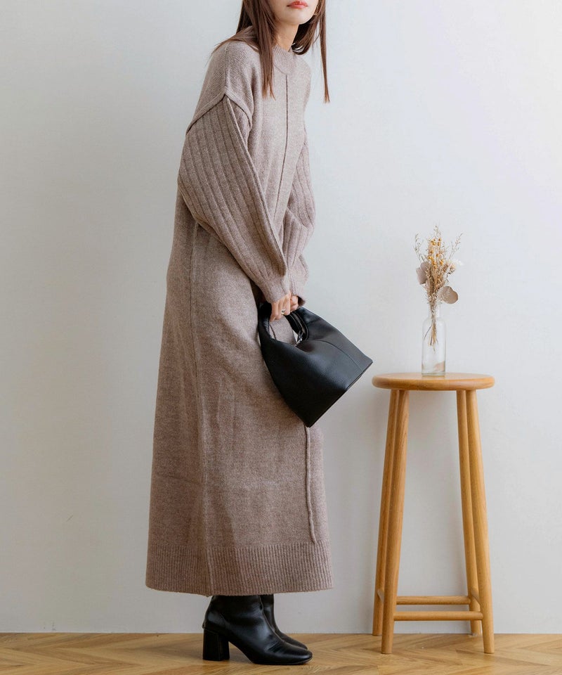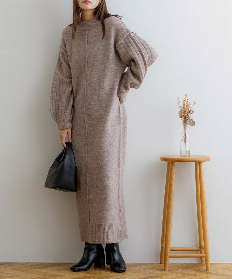 袖リブニットロングワンピース