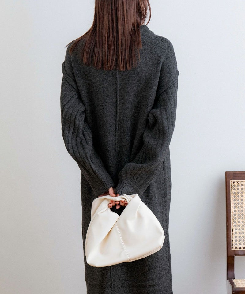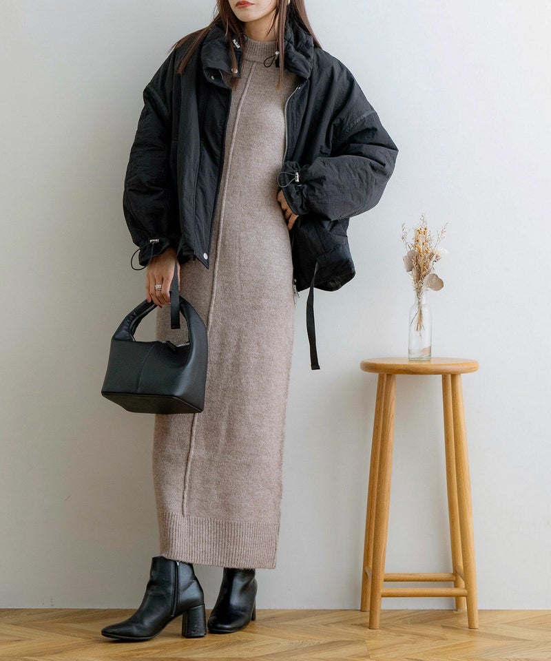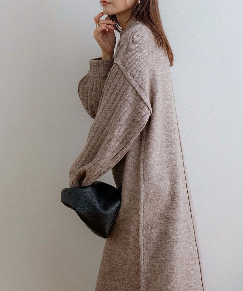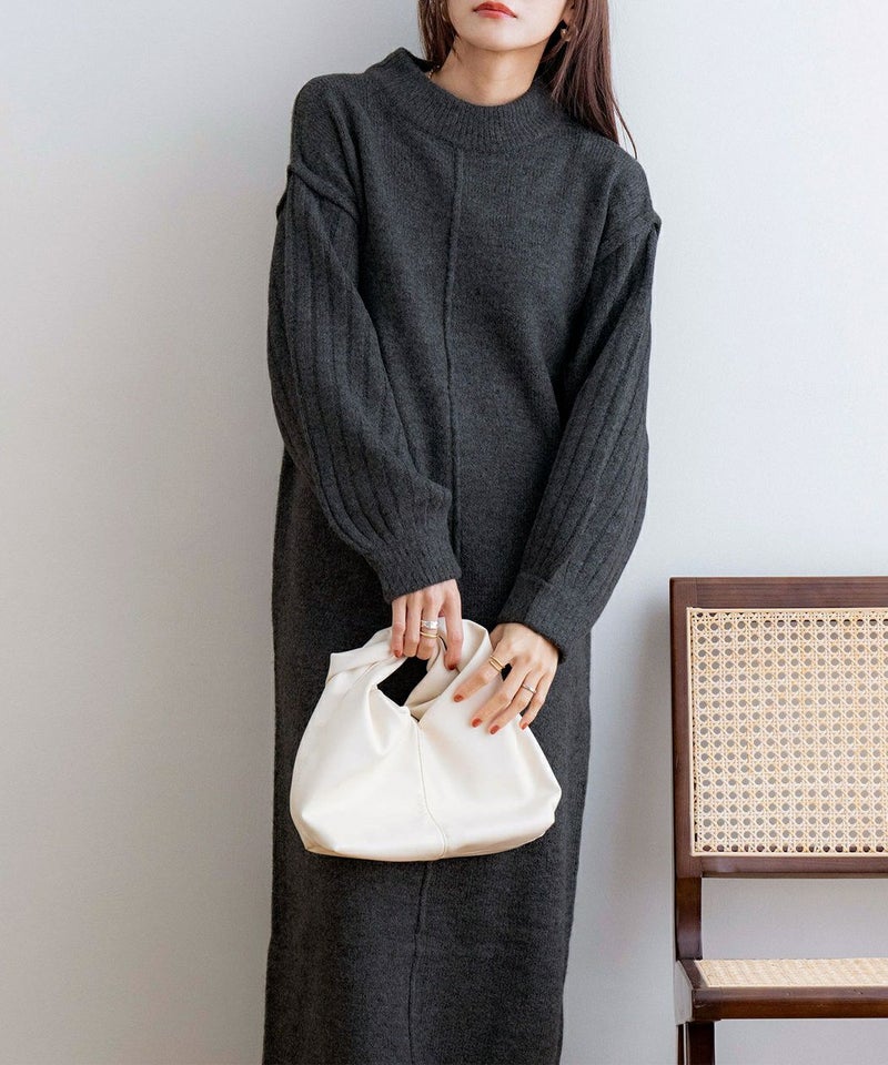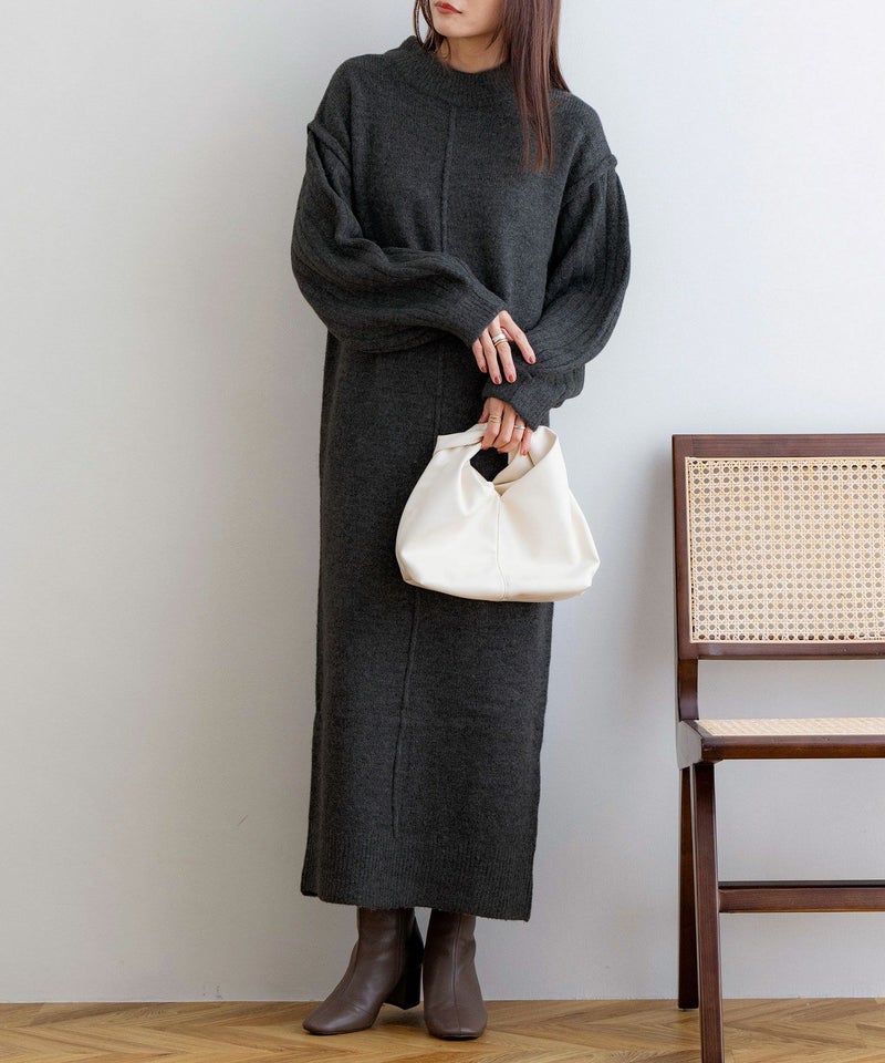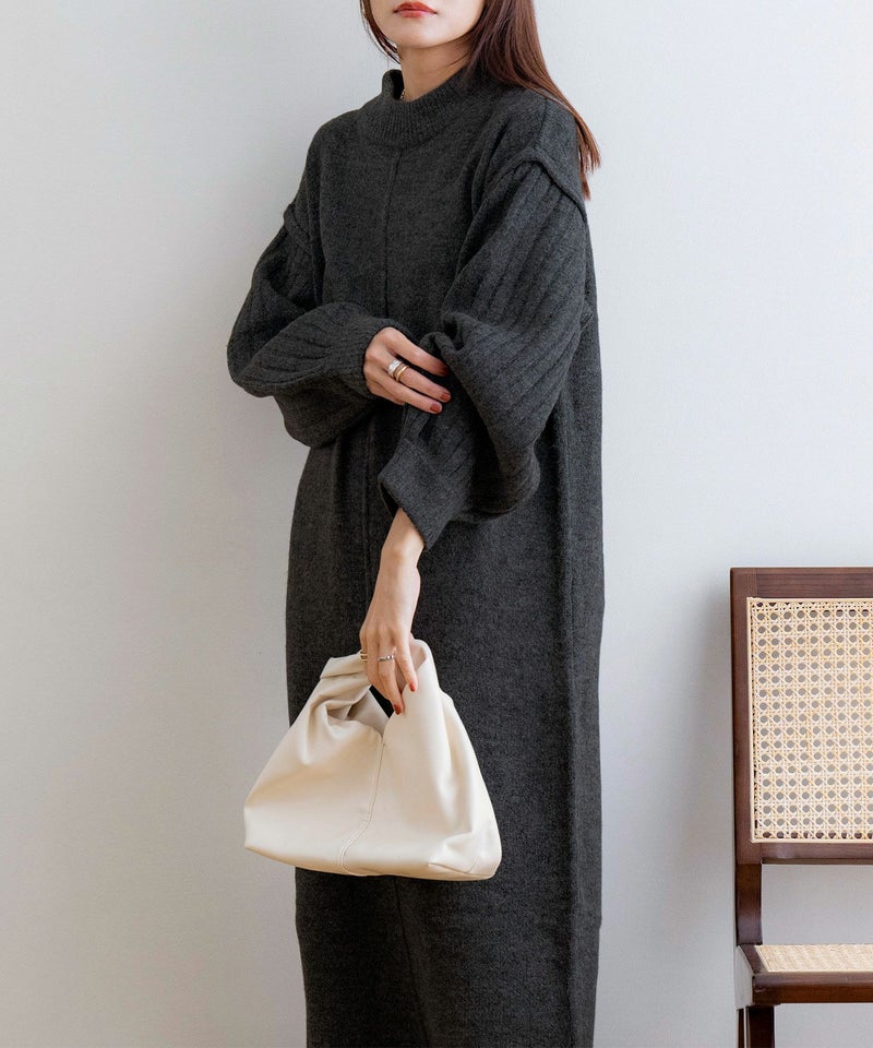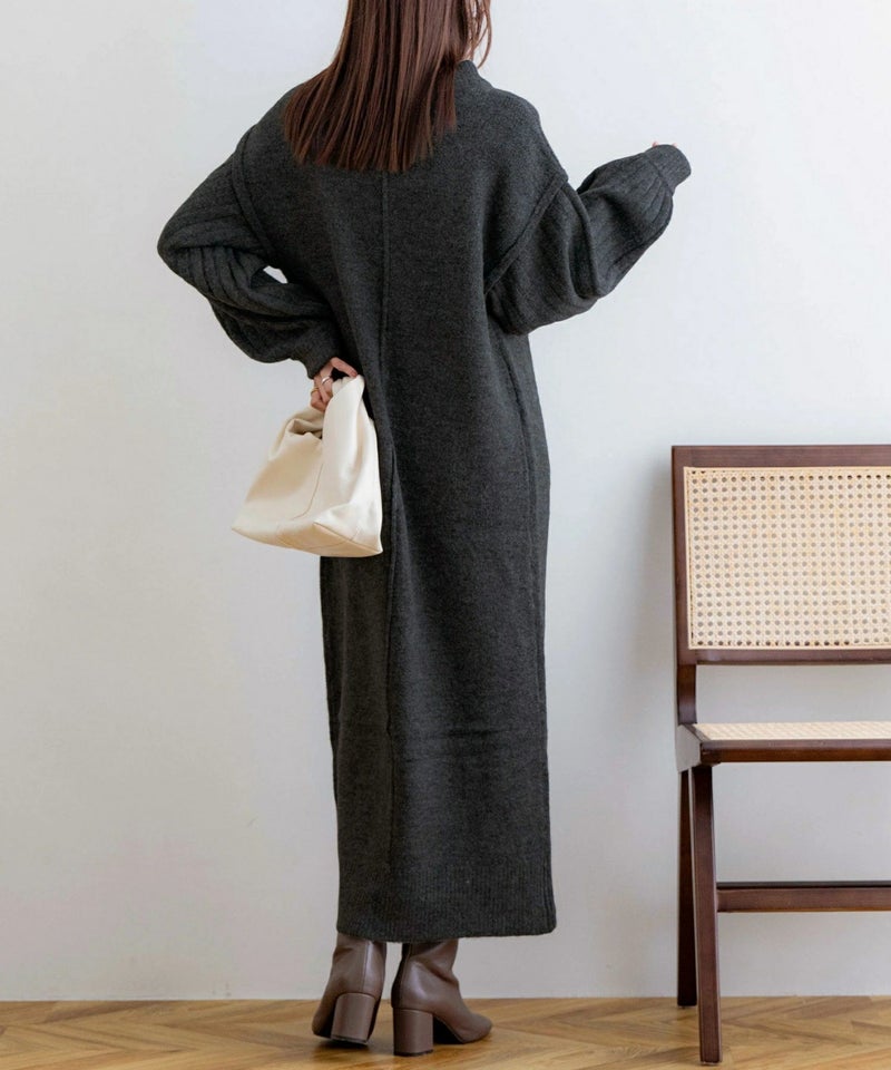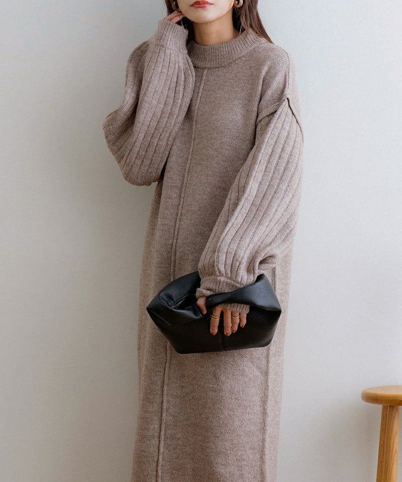 袖リブニットロングワンピース