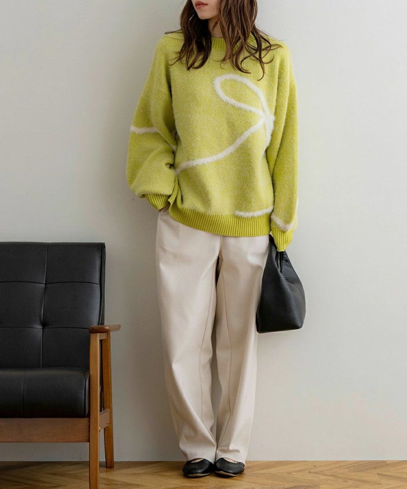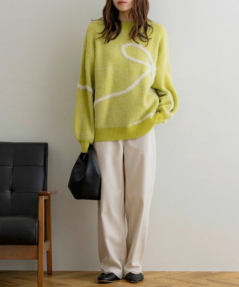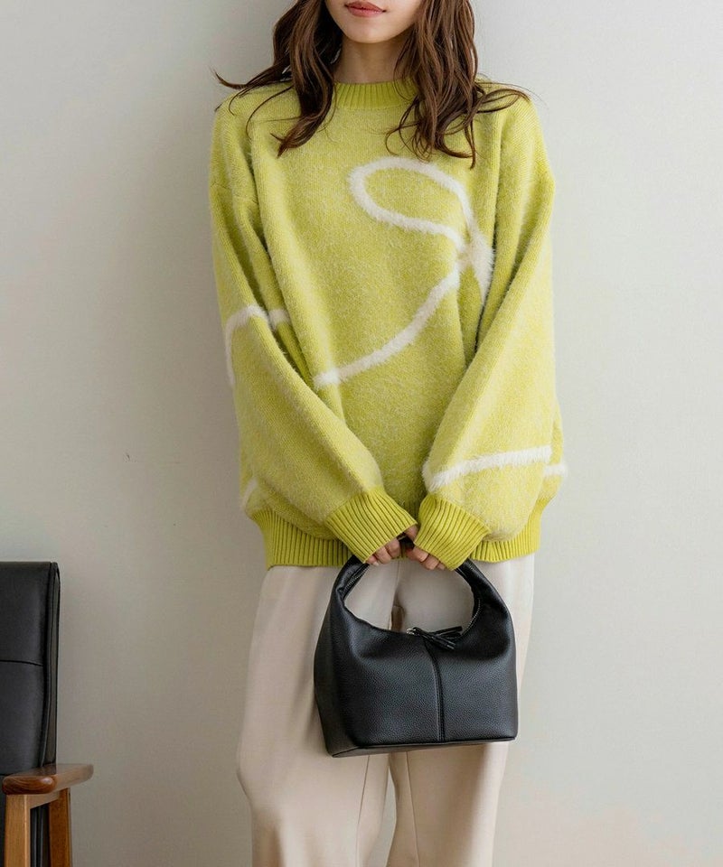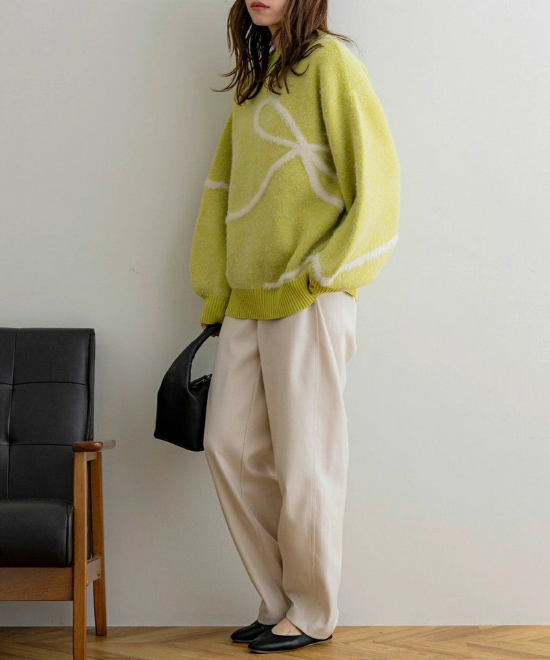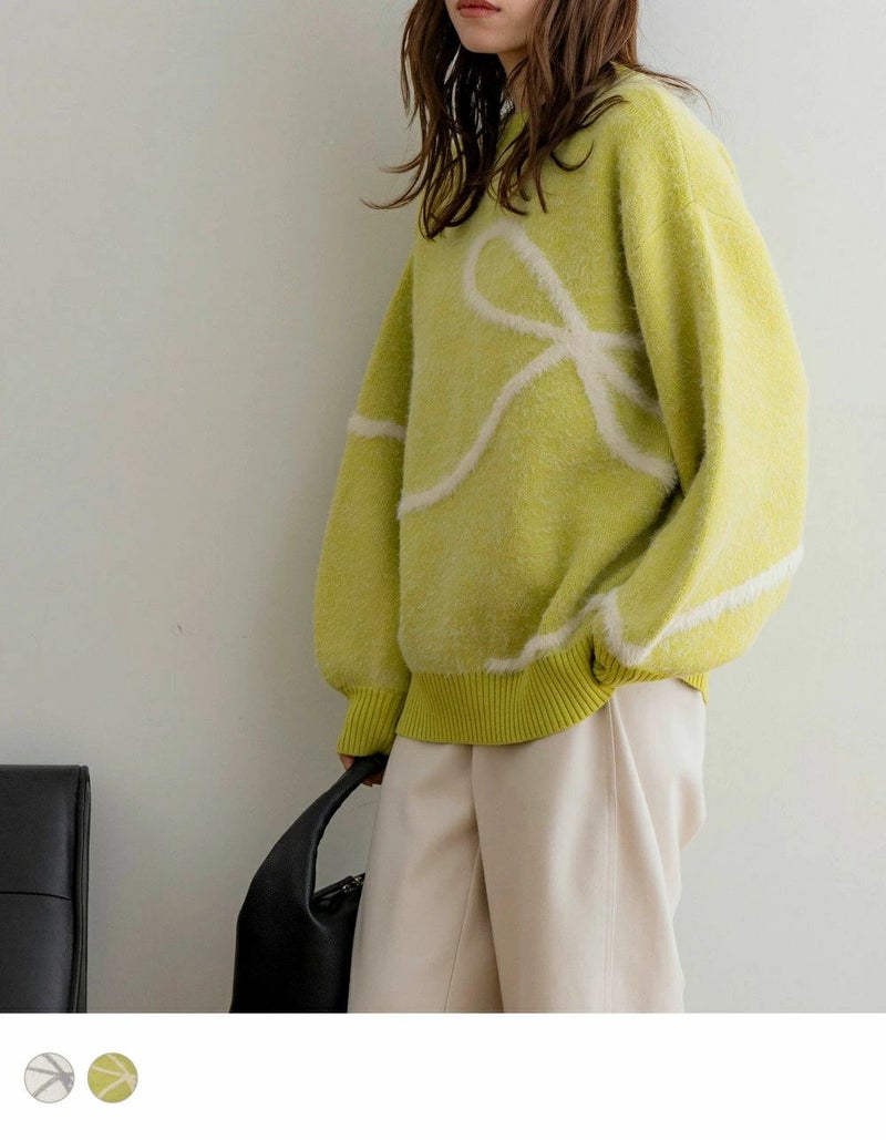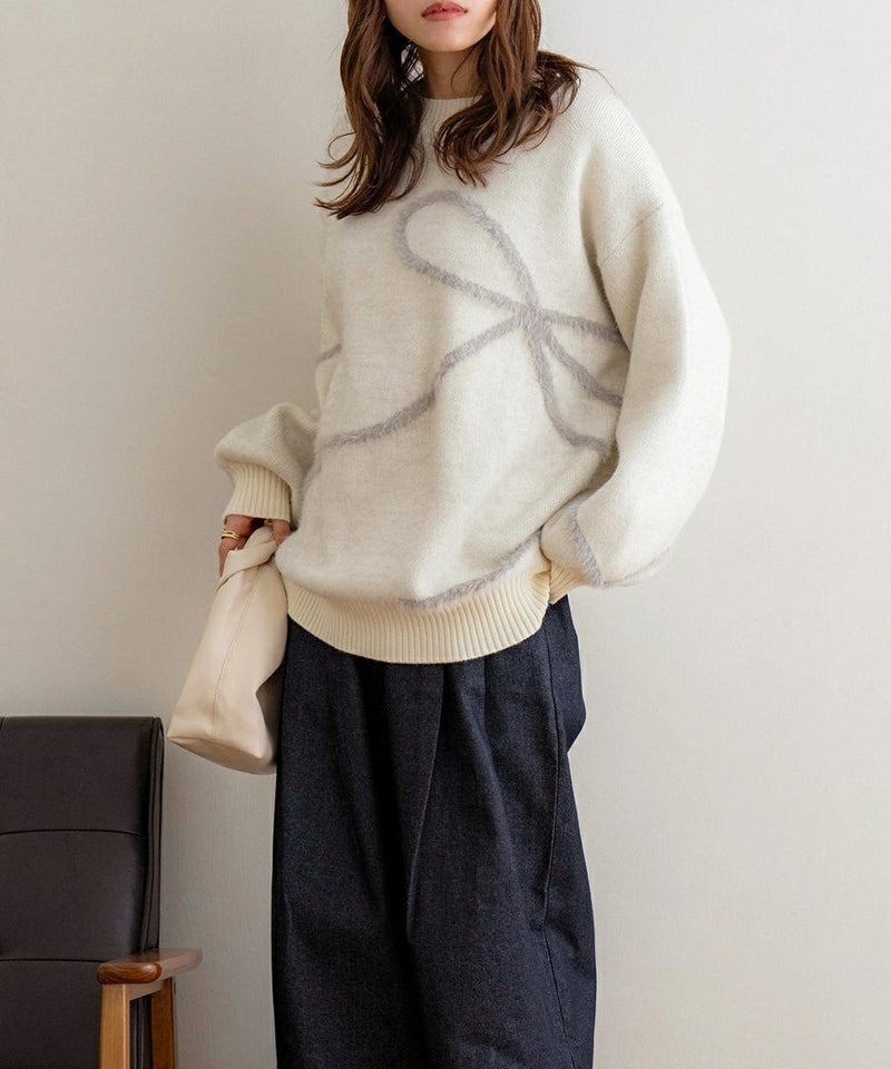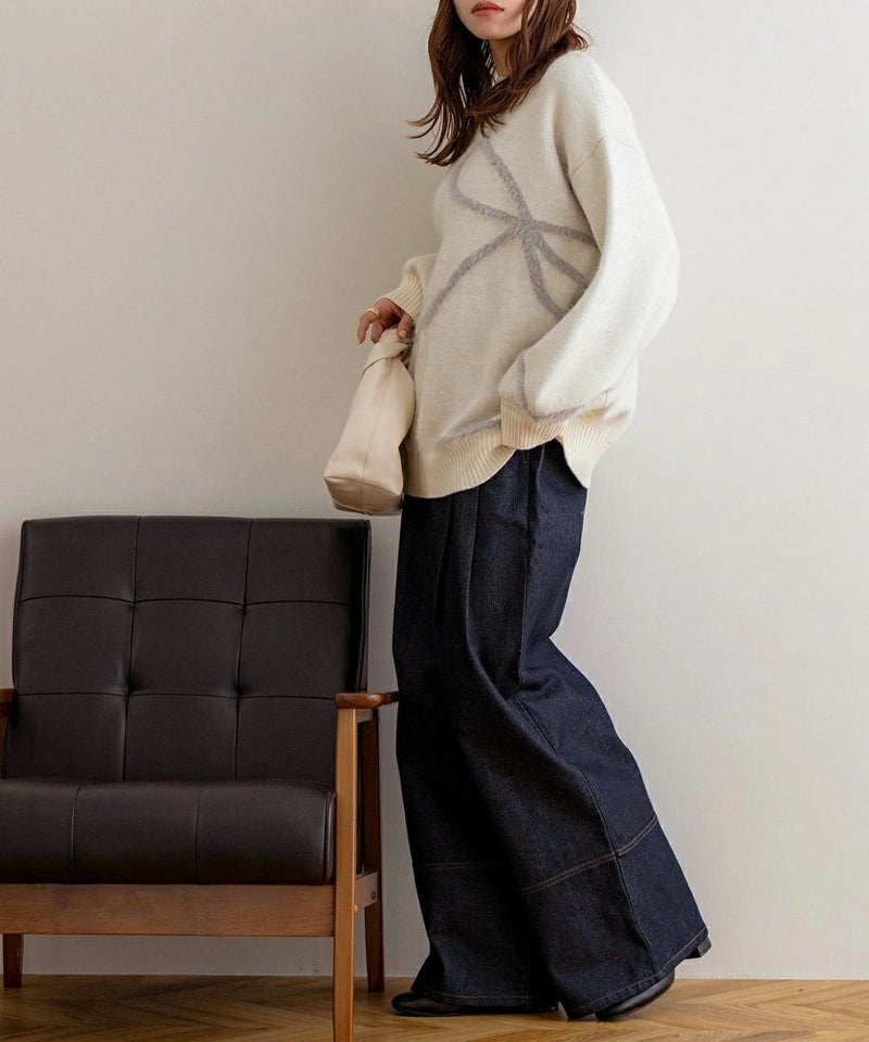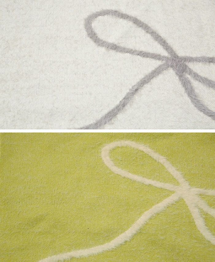 リボンデザイン配色ニット