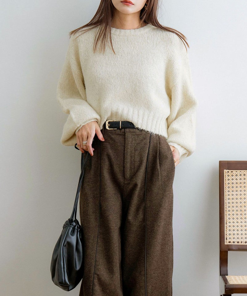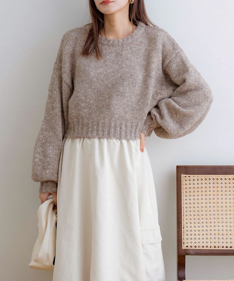 ラメMIXモヘアクロップドニット