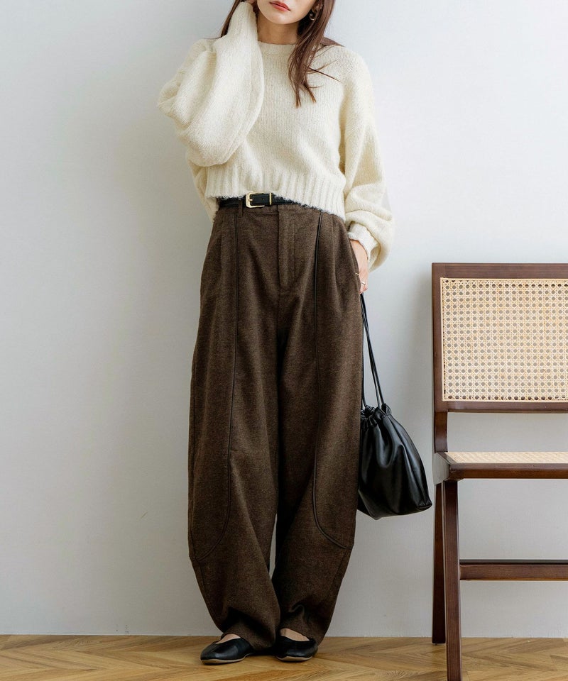 パイピングデザインニットトップス