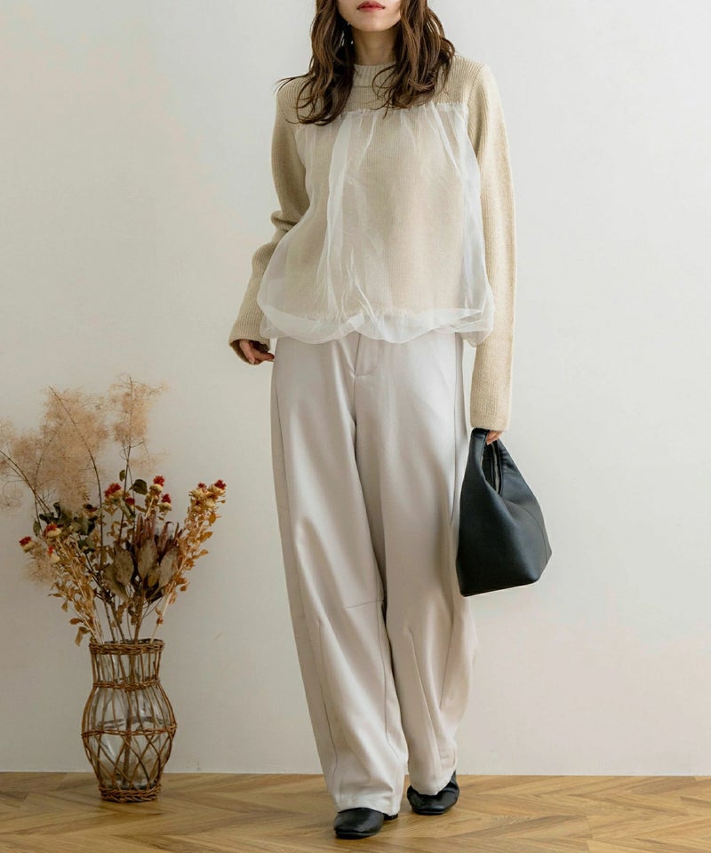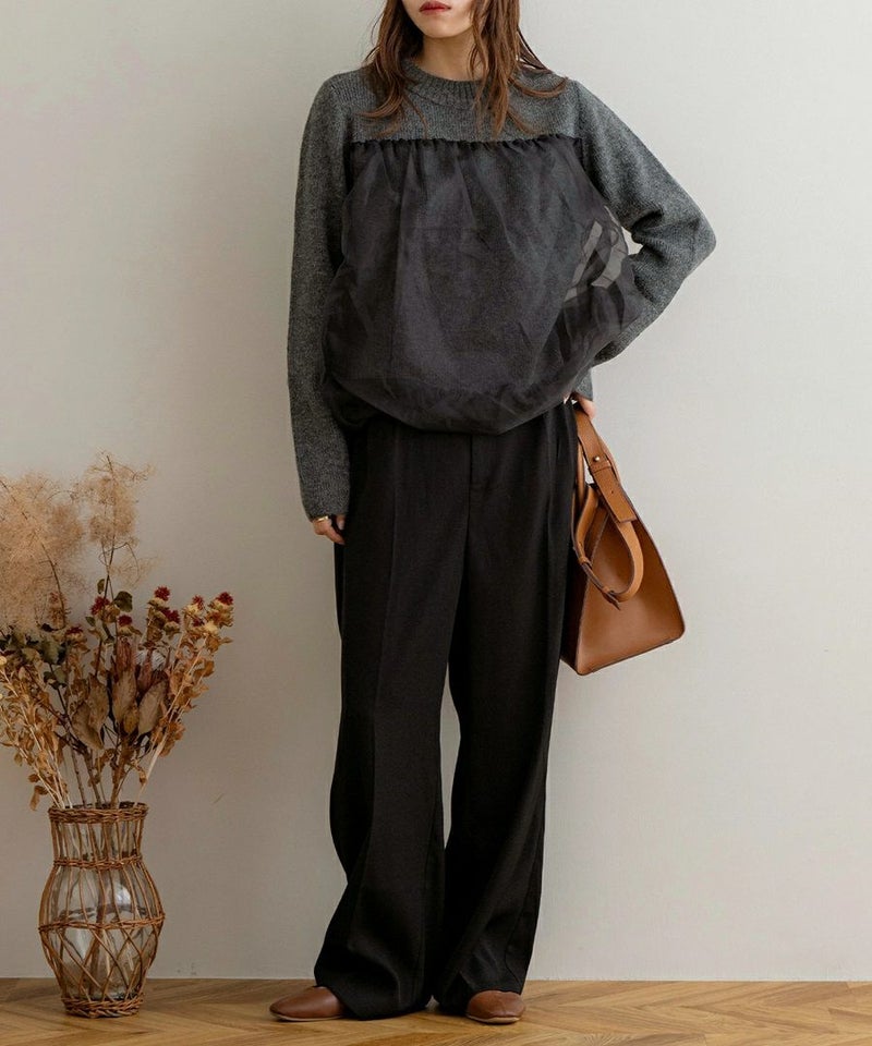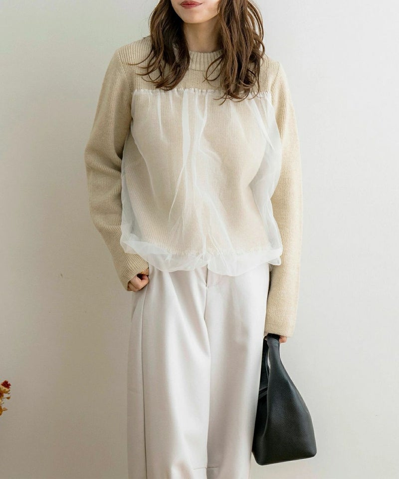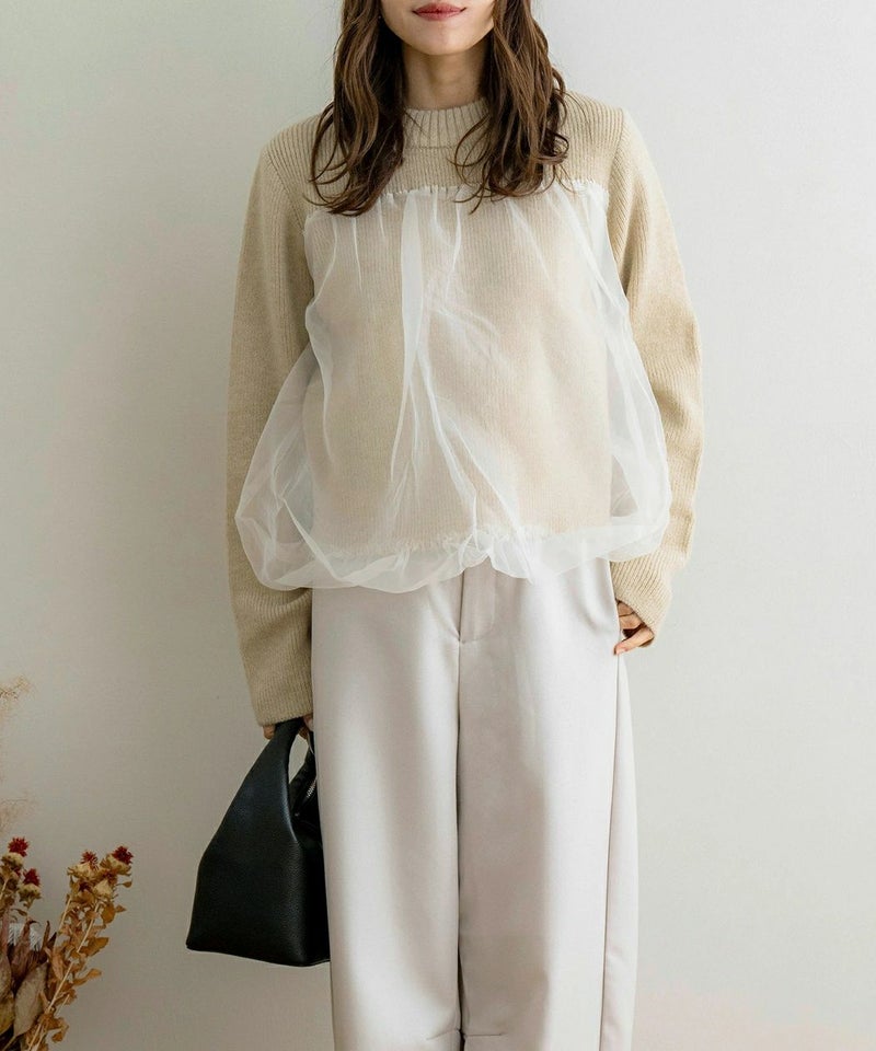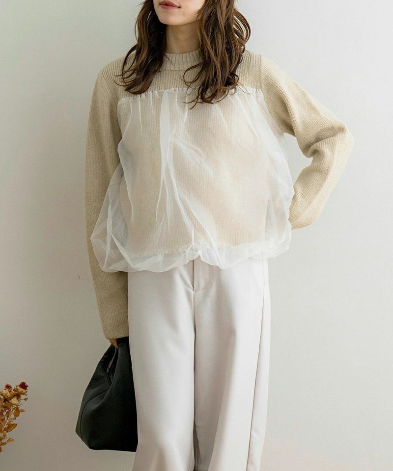 袖チュールドッキングプルオーバー