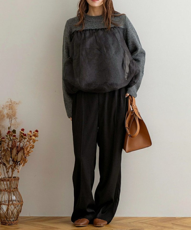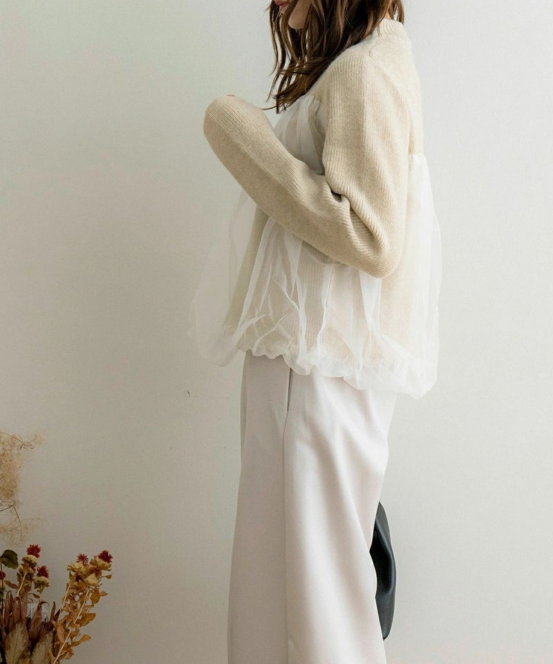 シアーバルーンレイヤードニット