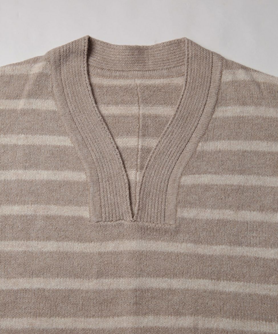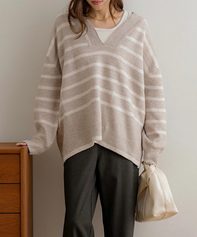Vネックボーダーニットトップス