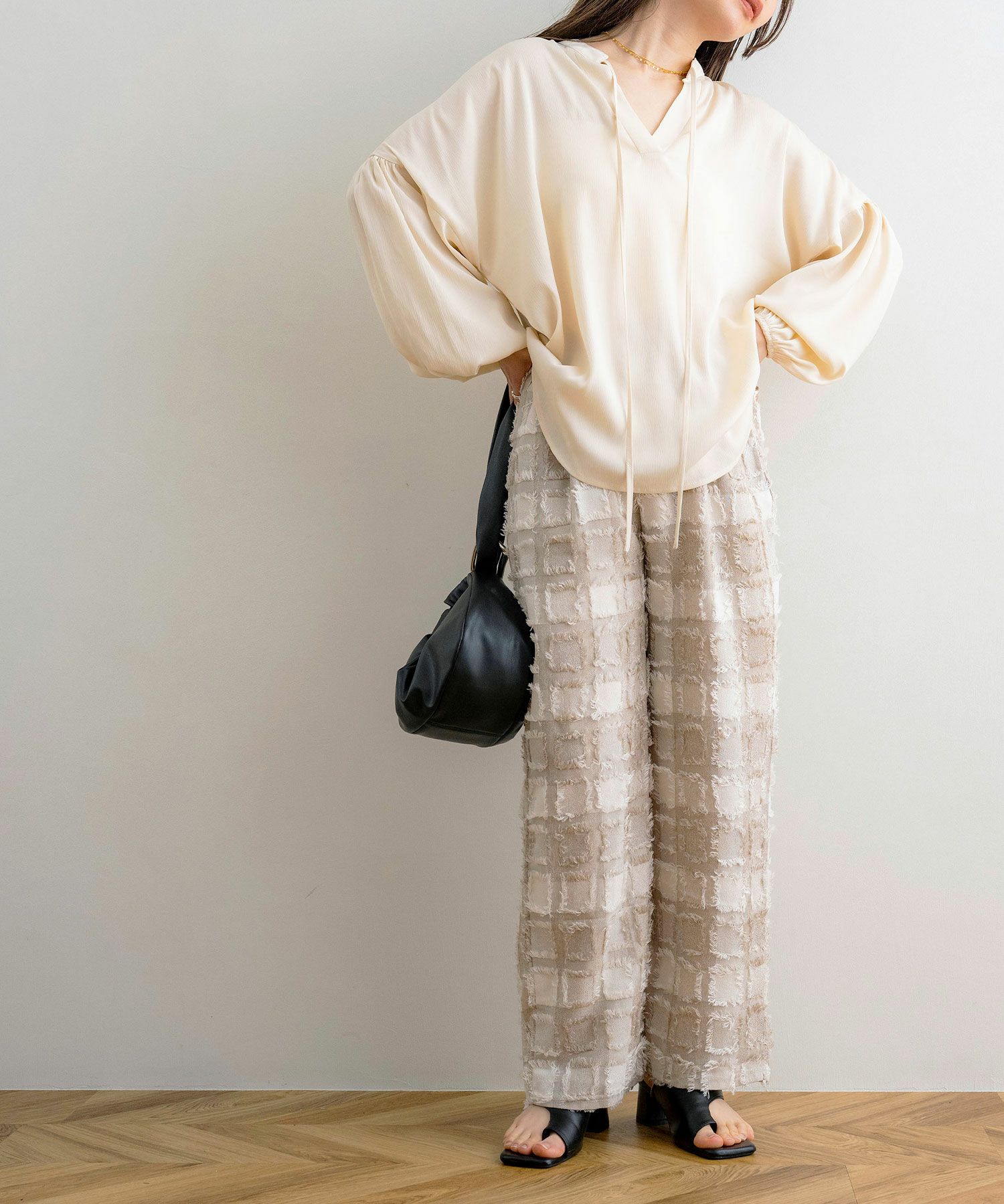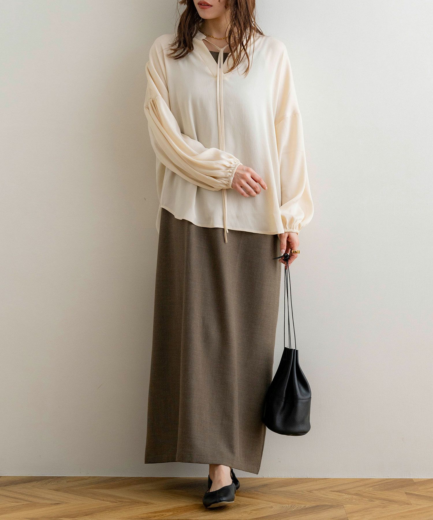 リボンギャザーチュニックブラウス