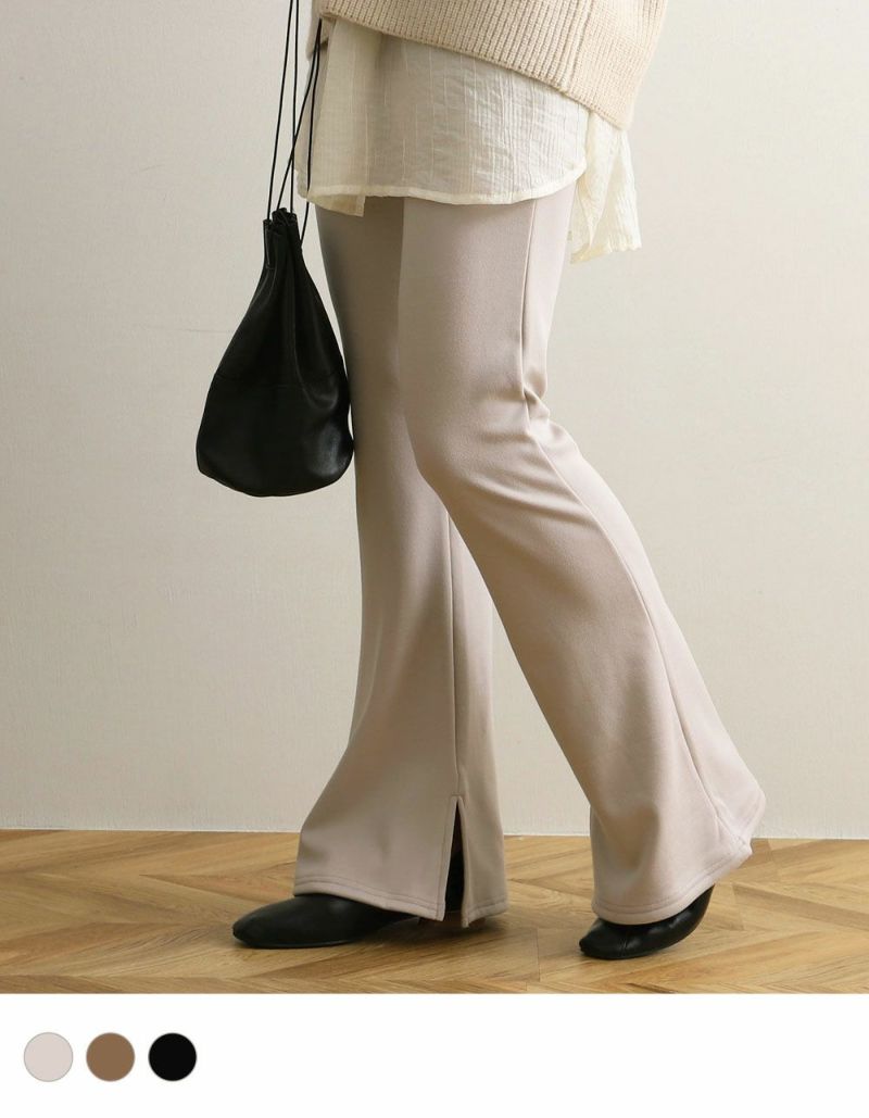 裏起毛が暖かく、肌触りがいいフレアパンツ♪シルエットが綺麗で、ラフなのにスタイルアップまで叶えられる1着です◎