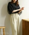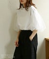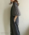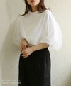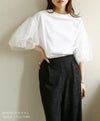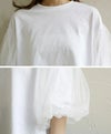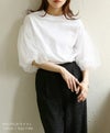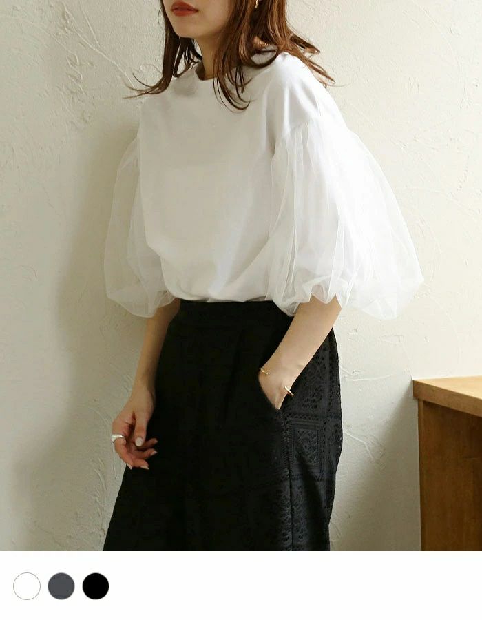 チュールのパフスリーブが女性らしいTシャツ。シンプルなデザインながら1枚ではもちろん、キャミワンピースやオールインワンのインナーに合わせるだけで、華やかに見せてくれます◎