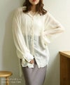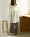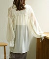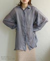 ほんのりラメがかったシアー素材が今年らしいオーバーシャツ。背中から袖まで入ったギャザーデザインが可愛らしい1着♪