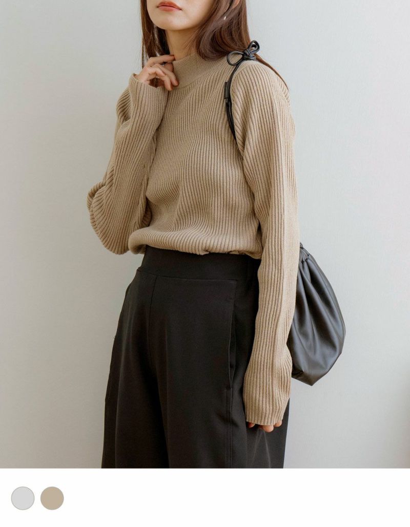 ボトルネックラメリブトップス
