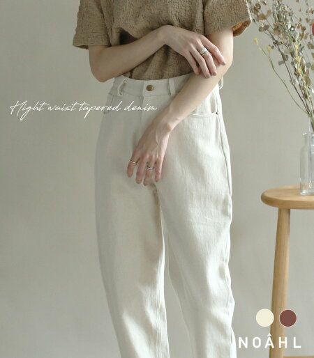 真っ白じゃないキナリ色、コロンとかわいいゴールドボタン。"なんかかわいい"を形にしたハイウエストテーパードデニムです。ナチュラルで控えめ、癖のないシンプルさで主役のトップスを引き立ててくれます。サイズはM・L。アイボリーの他に、色褪せたようなブラウンの2カラー展開。他にないサツマイモのようなこっくりとしたブラウンデニムもおすすめです。どちらのお色もオールシーズン使え、トレンドに左右されない定番のカラーデニムが完成しました。