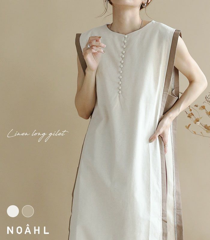検索ワード:ジレ ロングジレ ベスト ロングベスト ノースリーブ リネン レイヤード ロング マキシ レディース エクリュ ベージュ デザイン レディライク シルエット 無地 カジュアル シンプル 大人 ゆったり ママ レディースファッション 高見え 2022 春 夏 ママコーデ ニュアンスカラー 送料無料 メール便 noahl ノアル