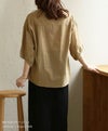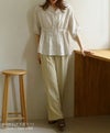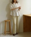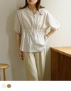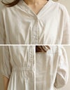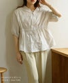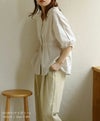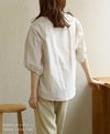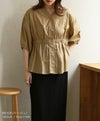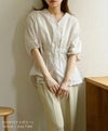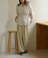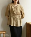 ウエストの絞りとVネックがスタイルアップして見せてくれるコットンブラウス。綿100%のナチュラルな素材感がポイントです◎
