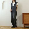 デニムライクな生地感と、ダボっとシルエットが夏のカジュアルスタイルにぴったりなオールインワン。深めのVネックで子どもっぽくならず、首元をすっきり見せてくれます♪デニムのような風合いがおしゃれな生地は柔らかく、伸縮もあるので着心地◎ママさんにもおすすめの1着です♪